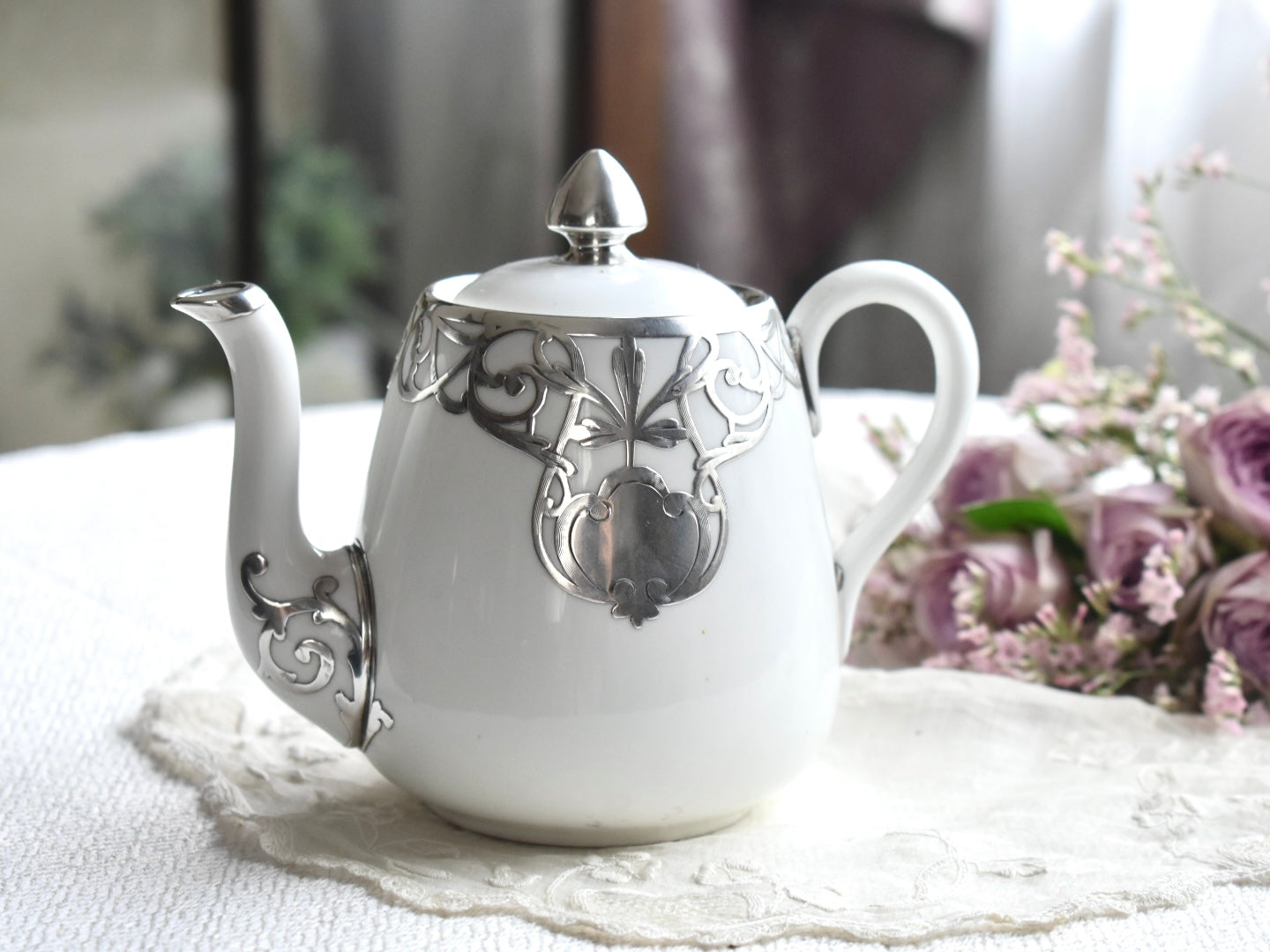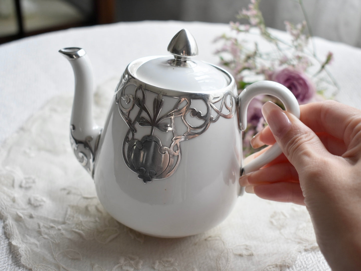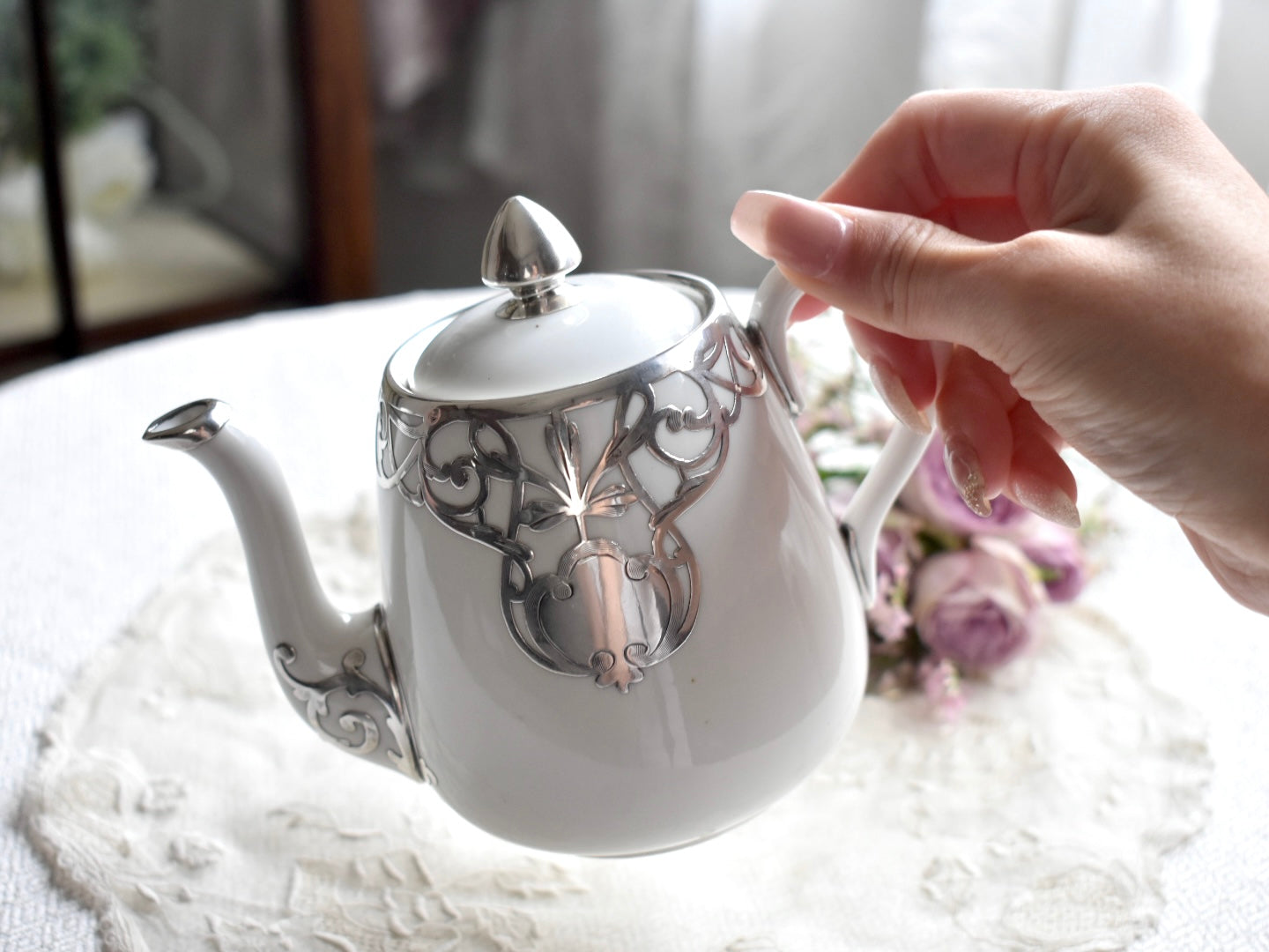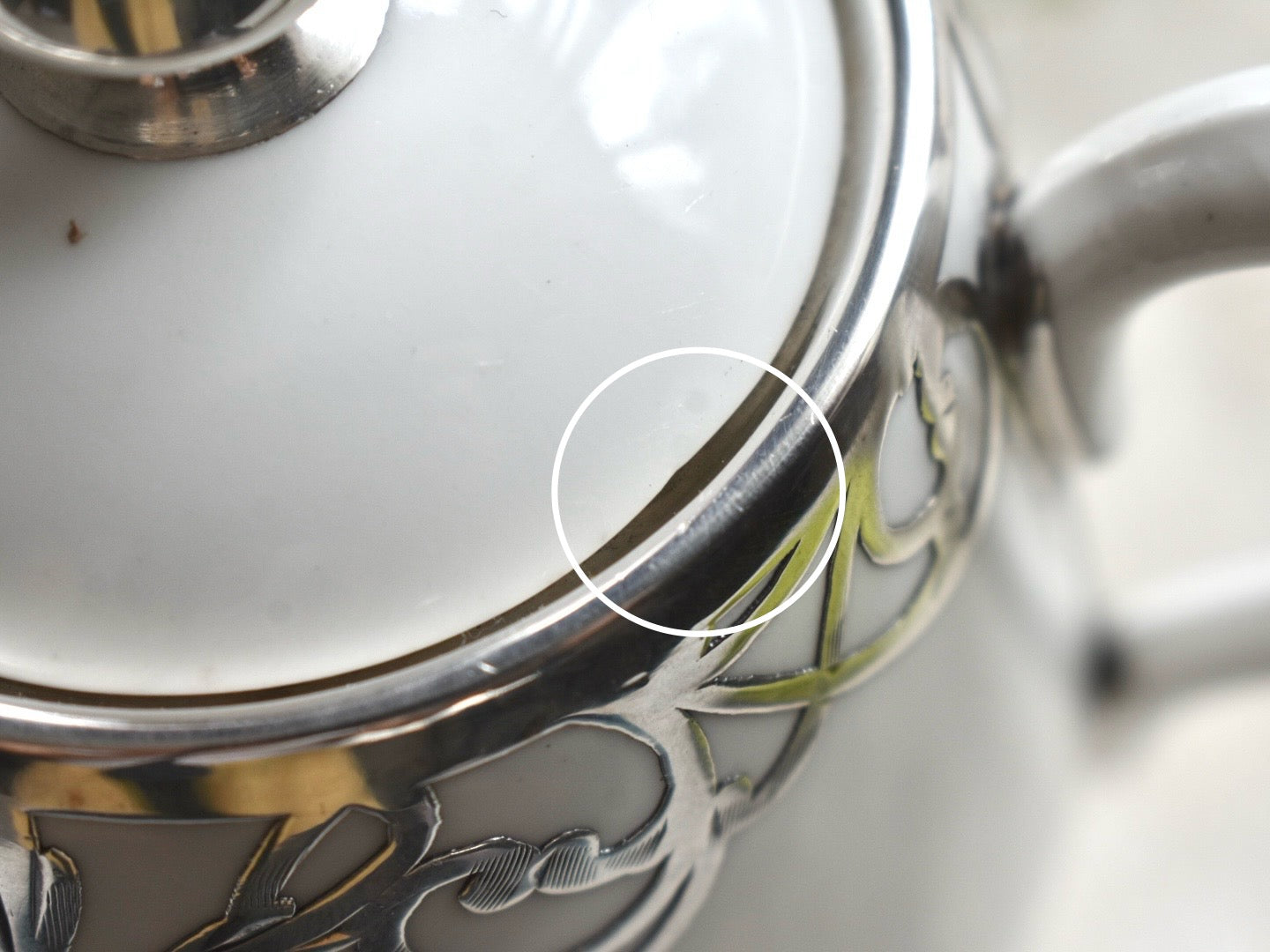 サイズは小さく、小ぶりなポット。丁寧にシルバーオーバーレイの細工が施されています。