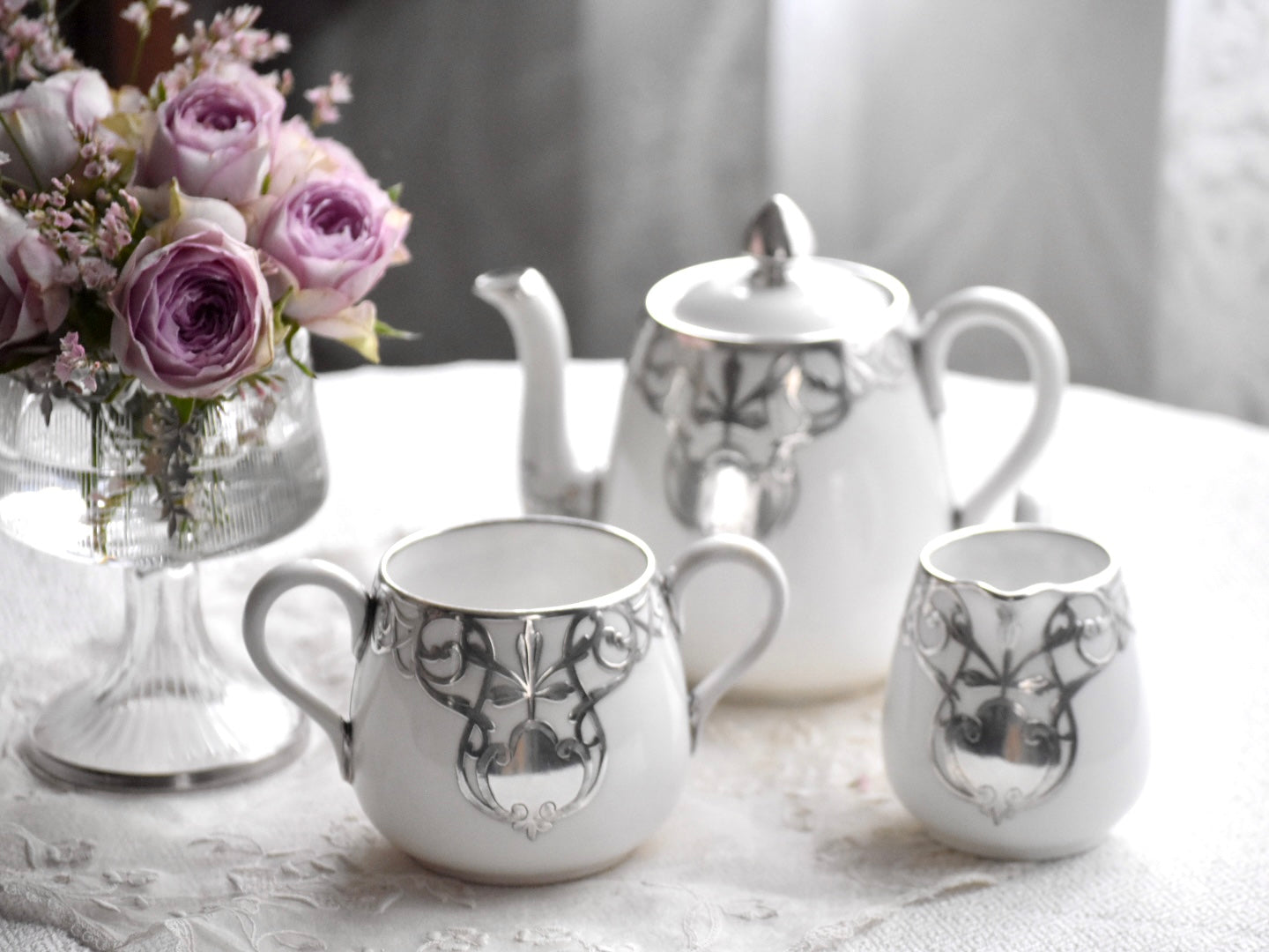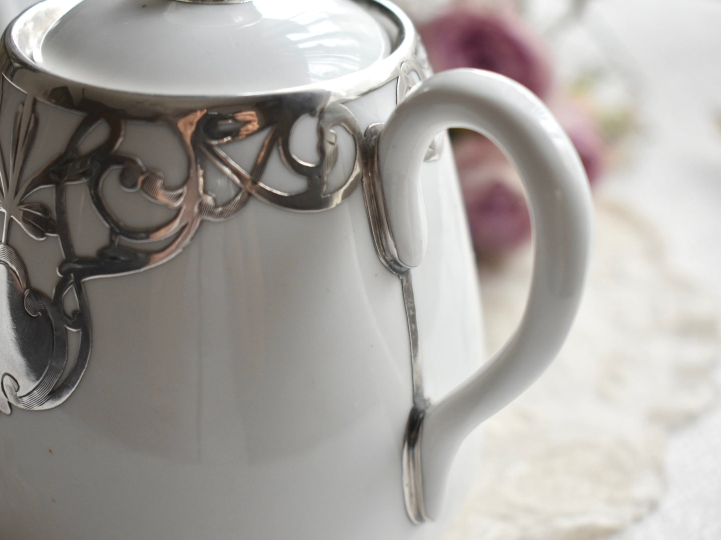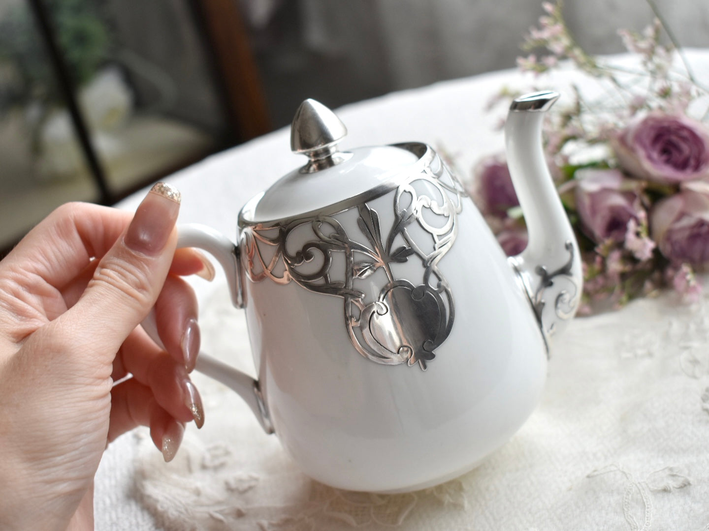 FINE SILVER もっとも純銀に近いシルバーにて施された上質なお品は、1889年に創業したCrown Staffordshireによるポットです。