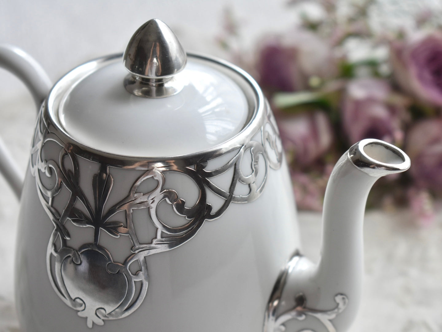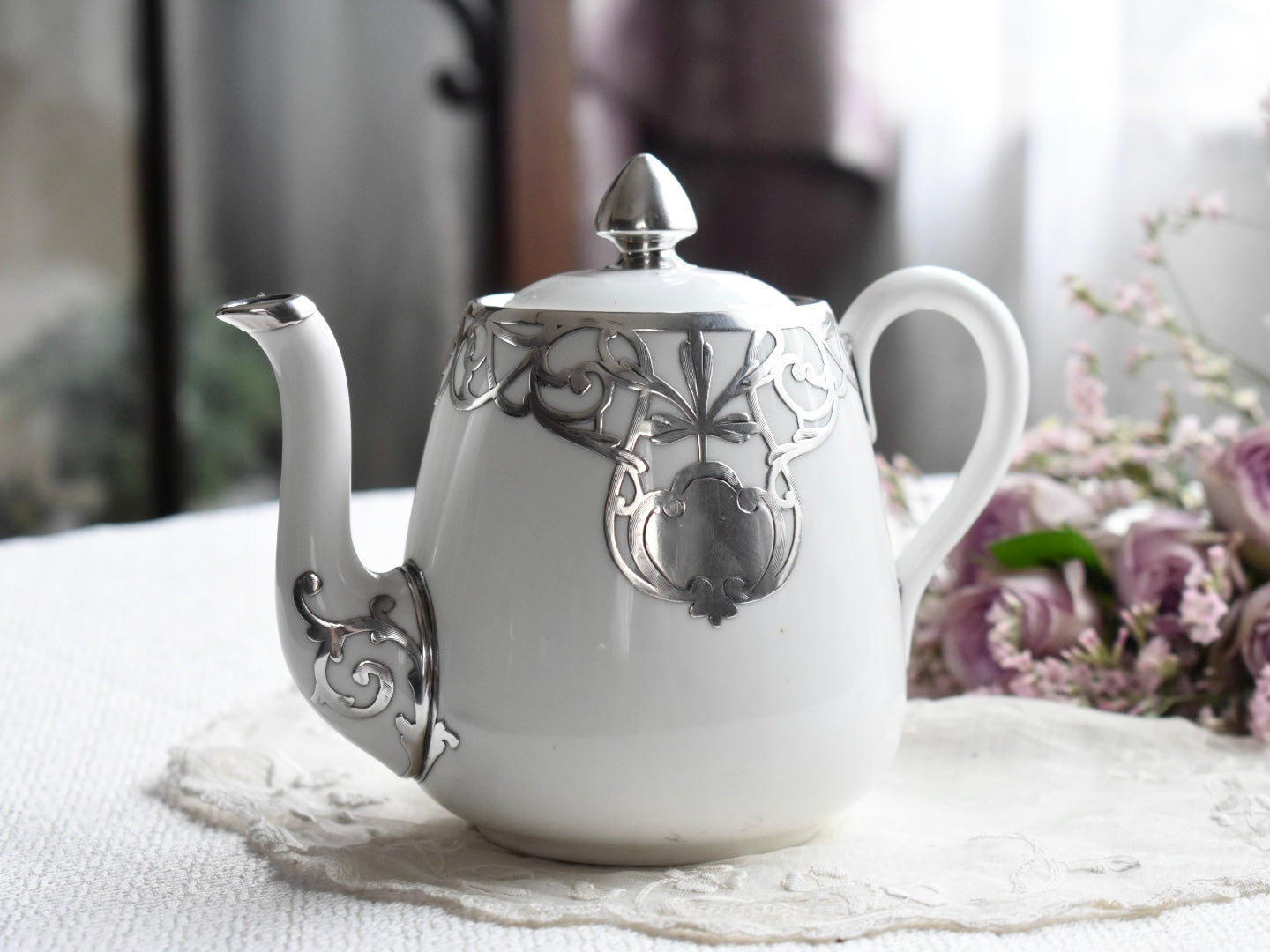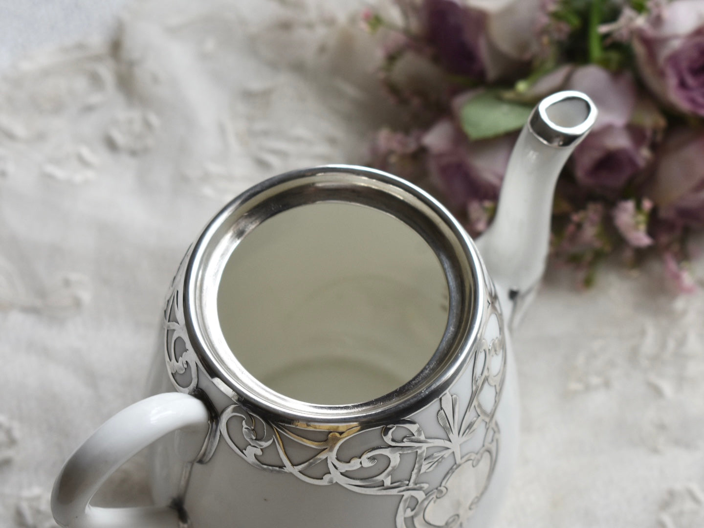 シルバーオーバーレイのコーヒーポット(欠けなどあり)