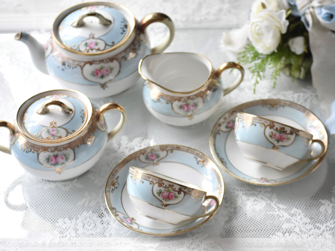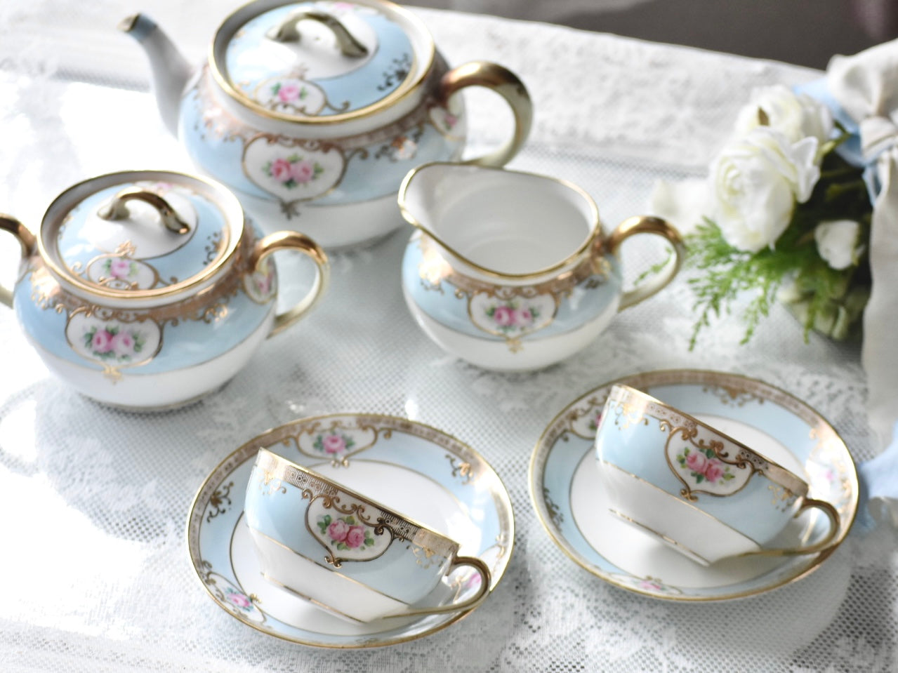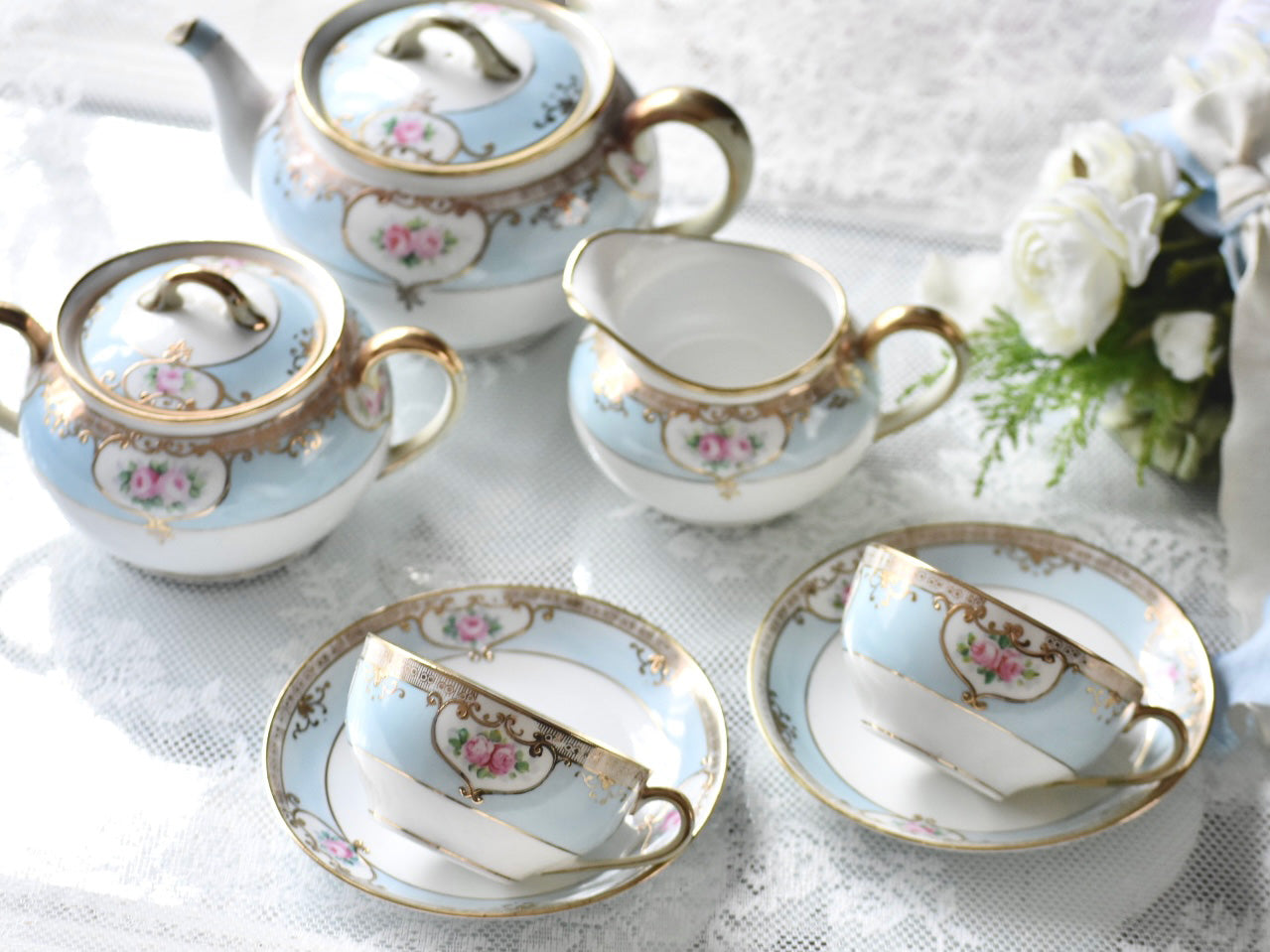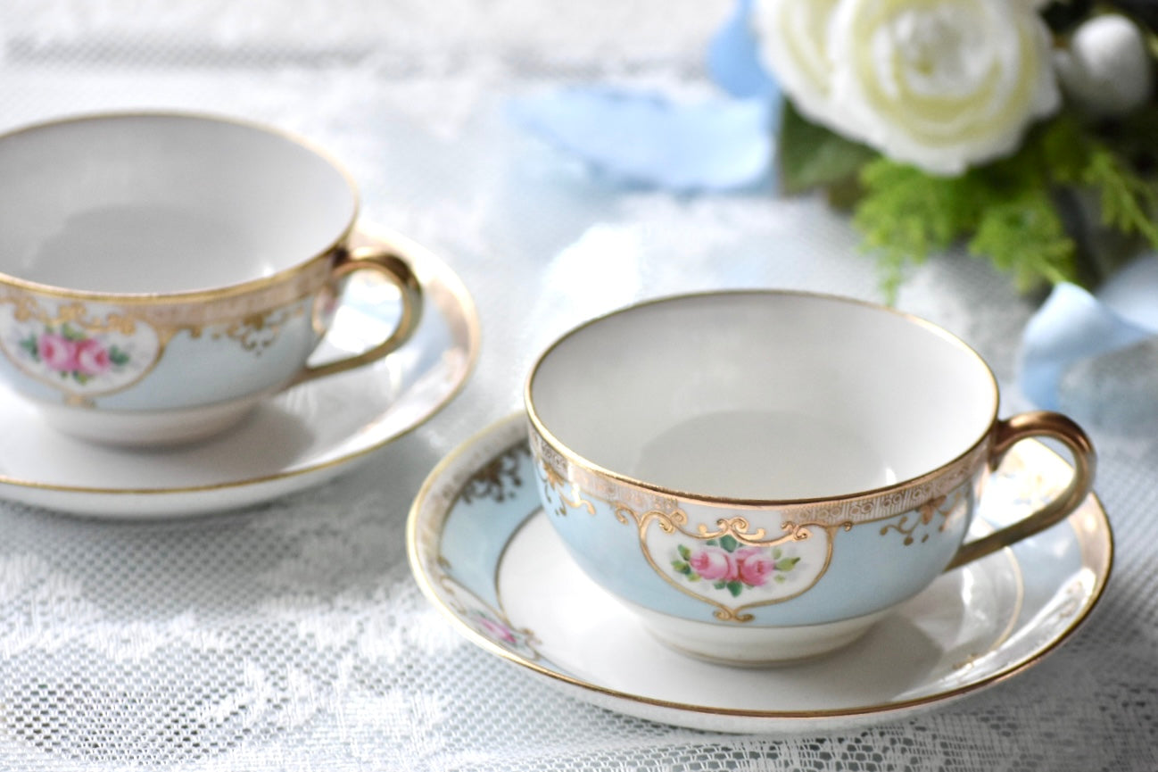 繊細な絵付けと柔らかな色調が織りなす調和が、オールドノリタケならではの魅力を伝えるセットです。