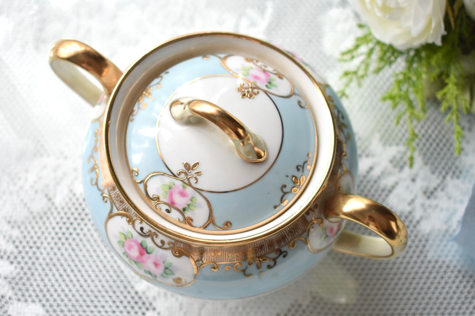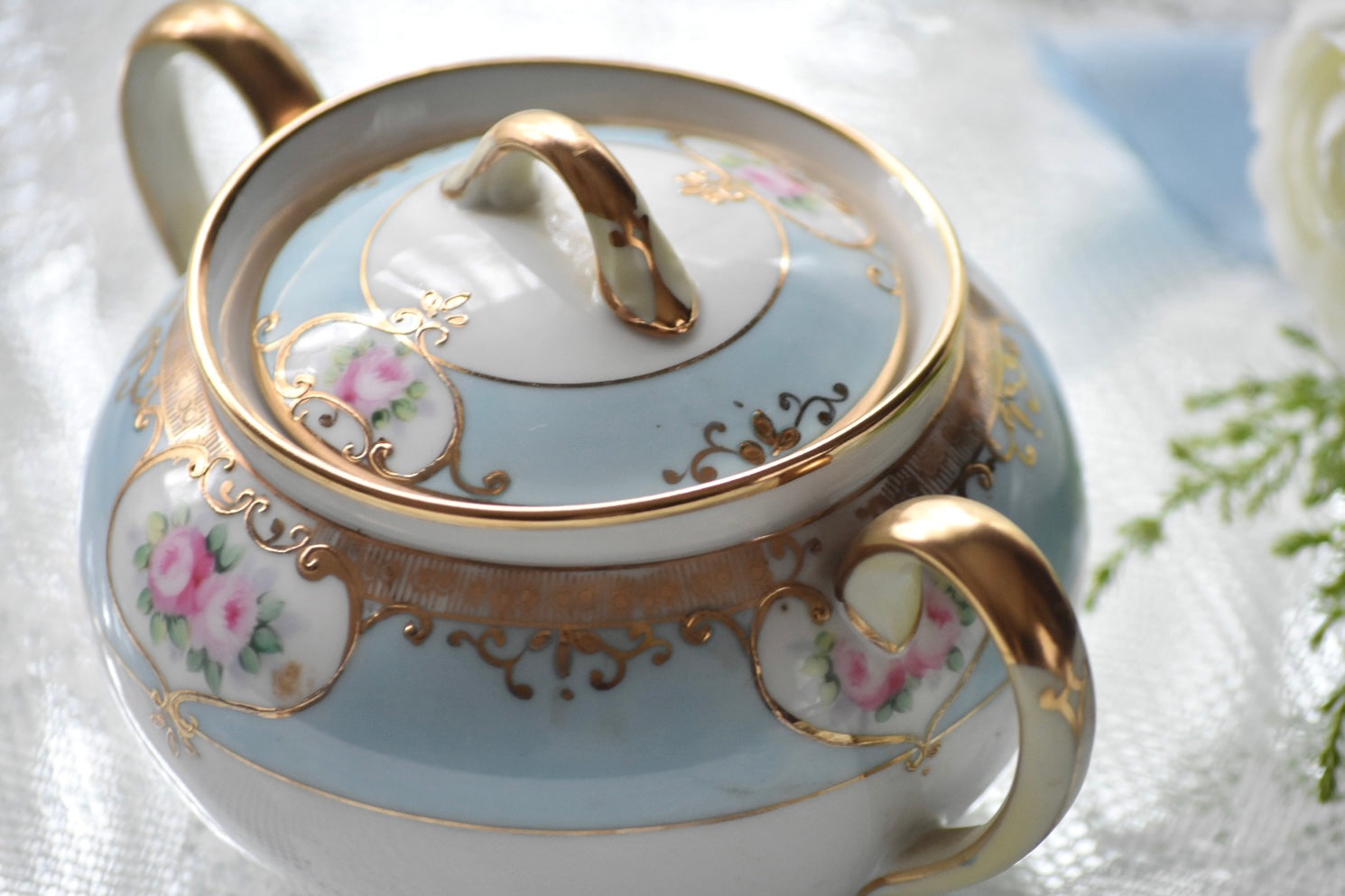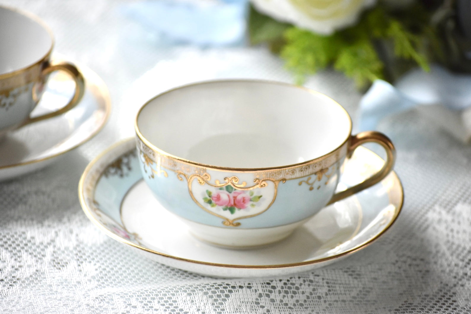 繊細な絵付けと柔らかな色調が織りなす調和が、オールドノリタケならではの魅力を伝えるセットです。