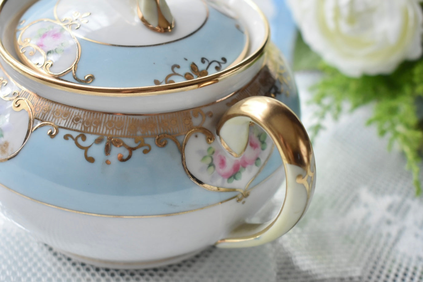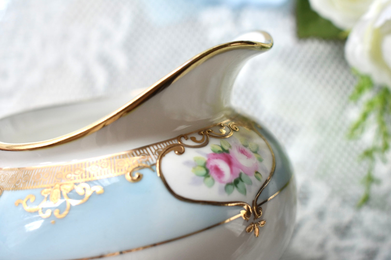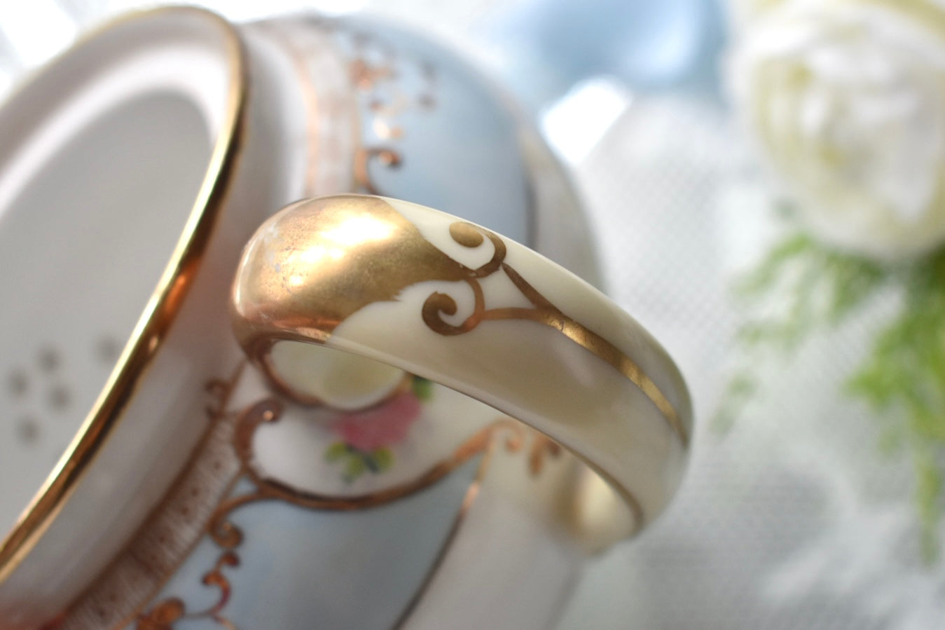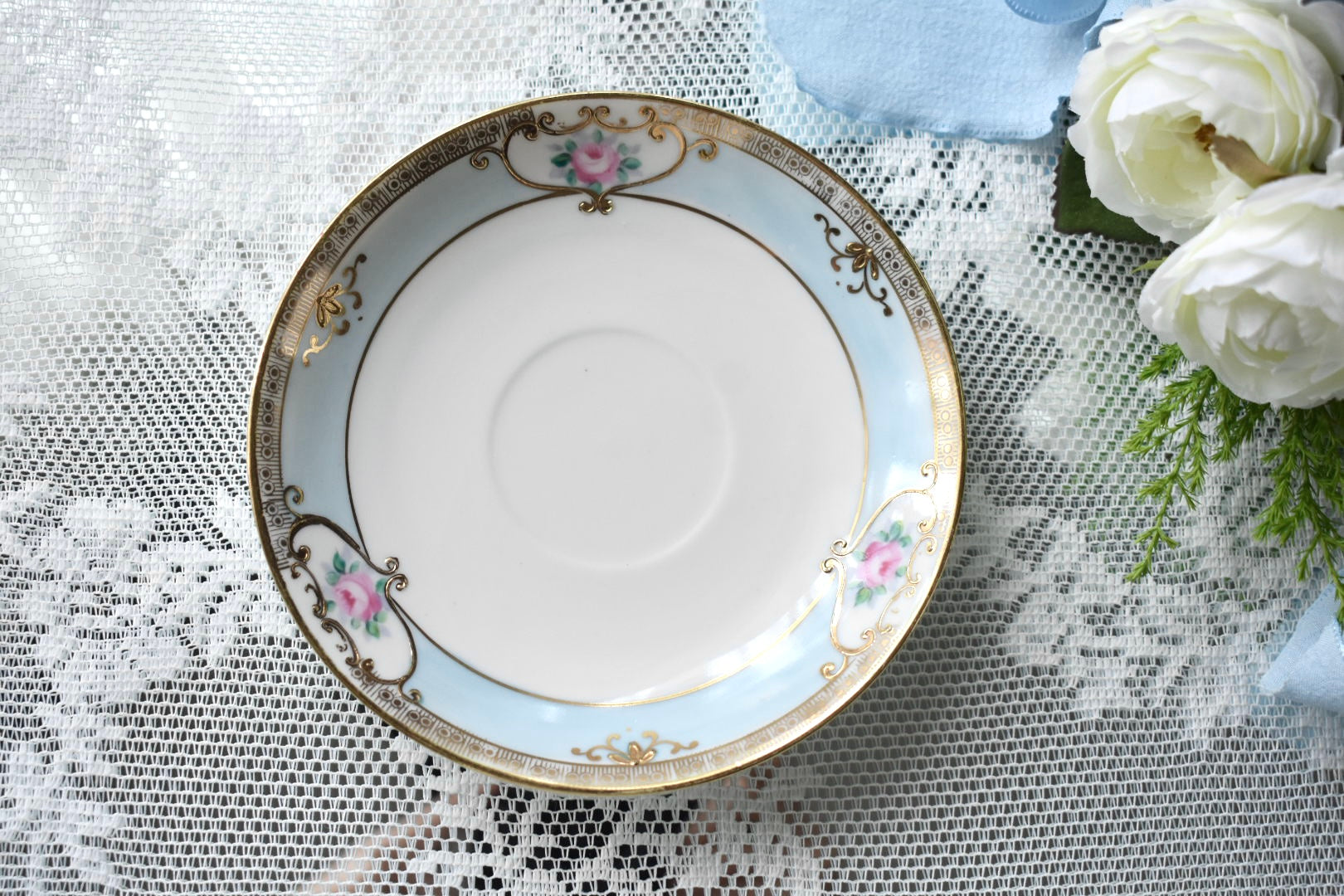 初期のノリタケのような華やかさや金彩の豪奢さこそありませんが、その分、落ち着いた上品さが際立つエレガントな印象です。
