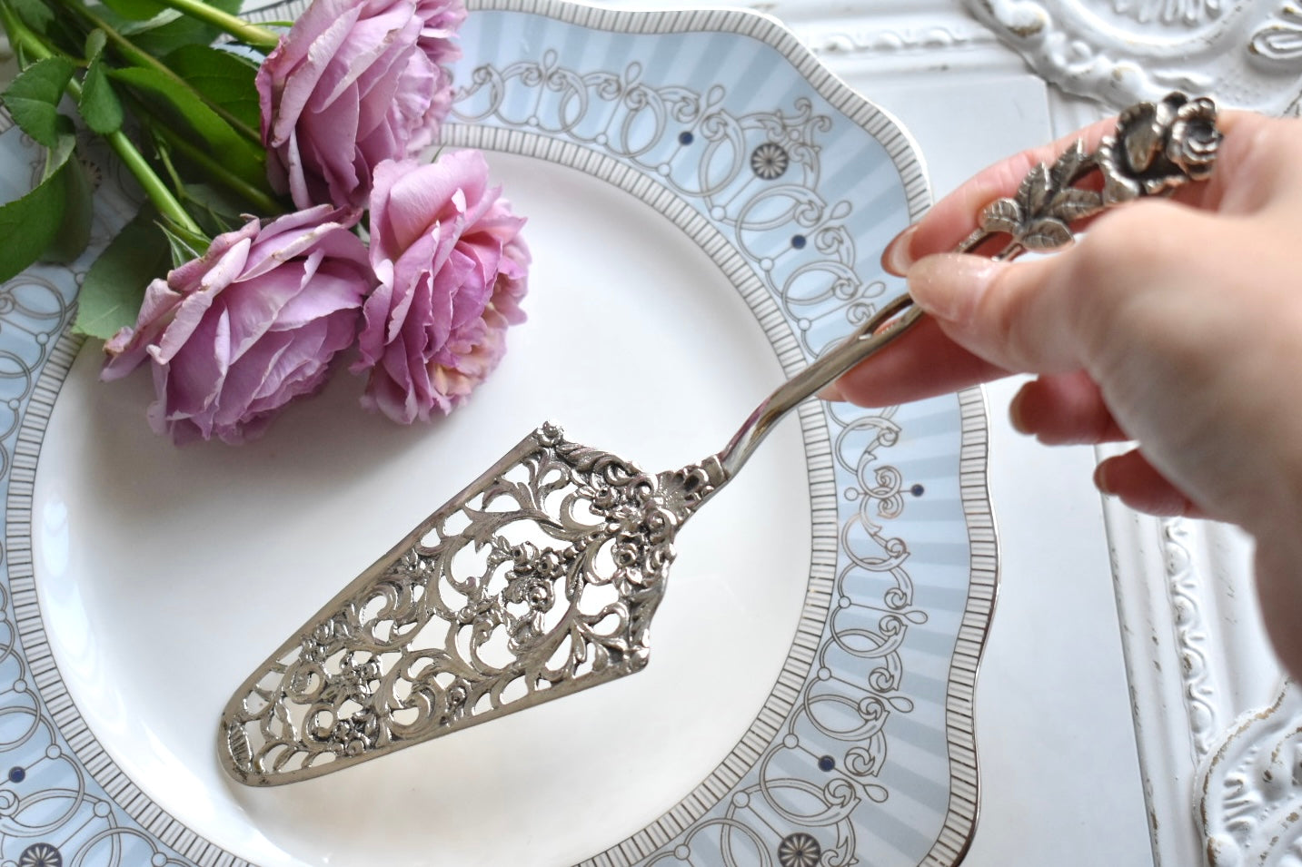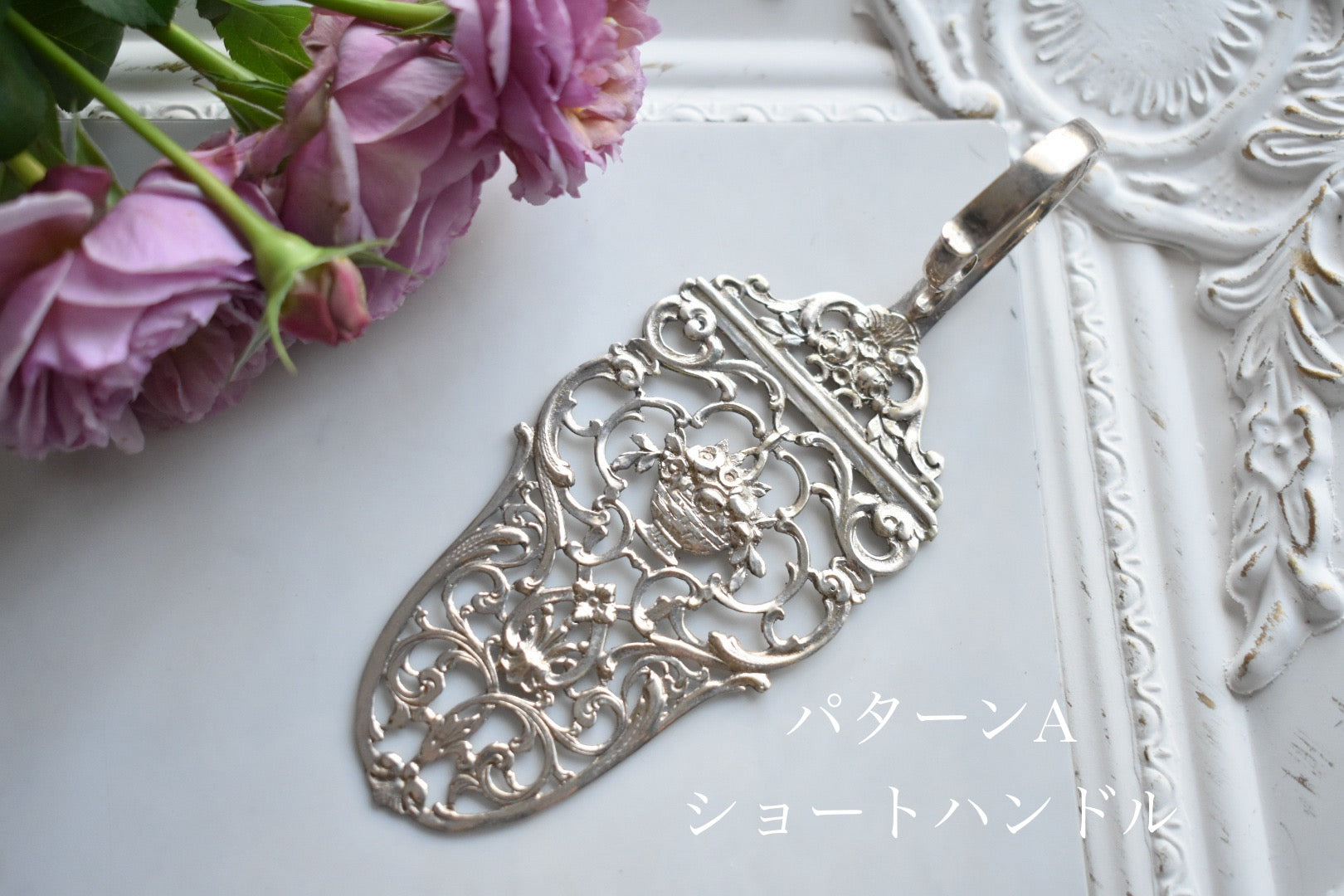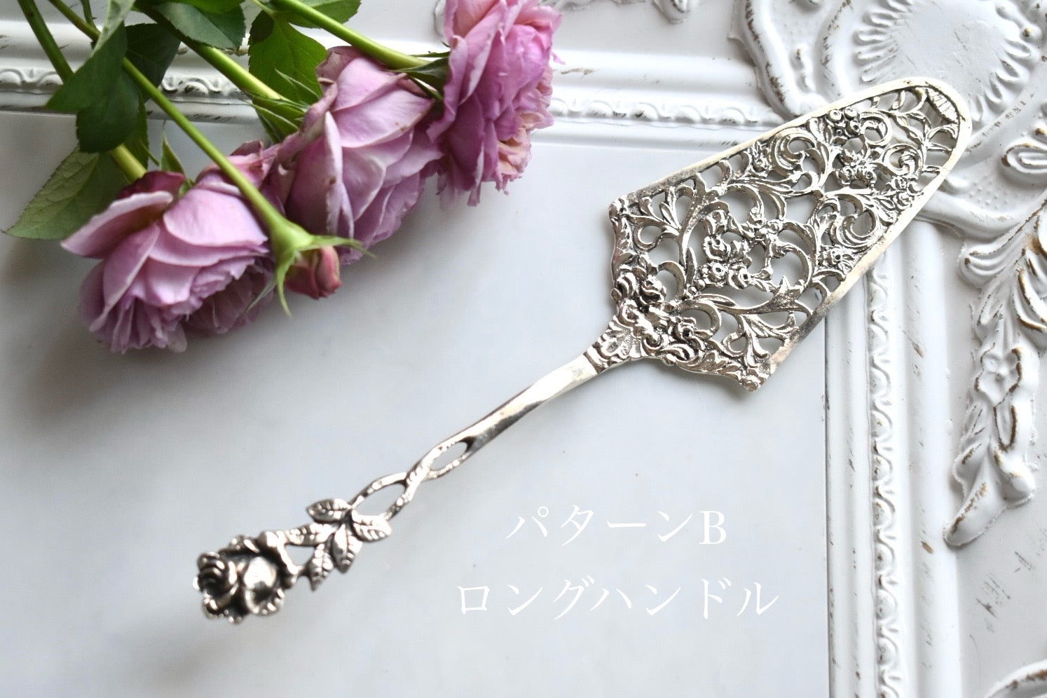 そして、続いて、パターンBはロングハンドルのバラデザインが特徴的なケーキサーバーです。