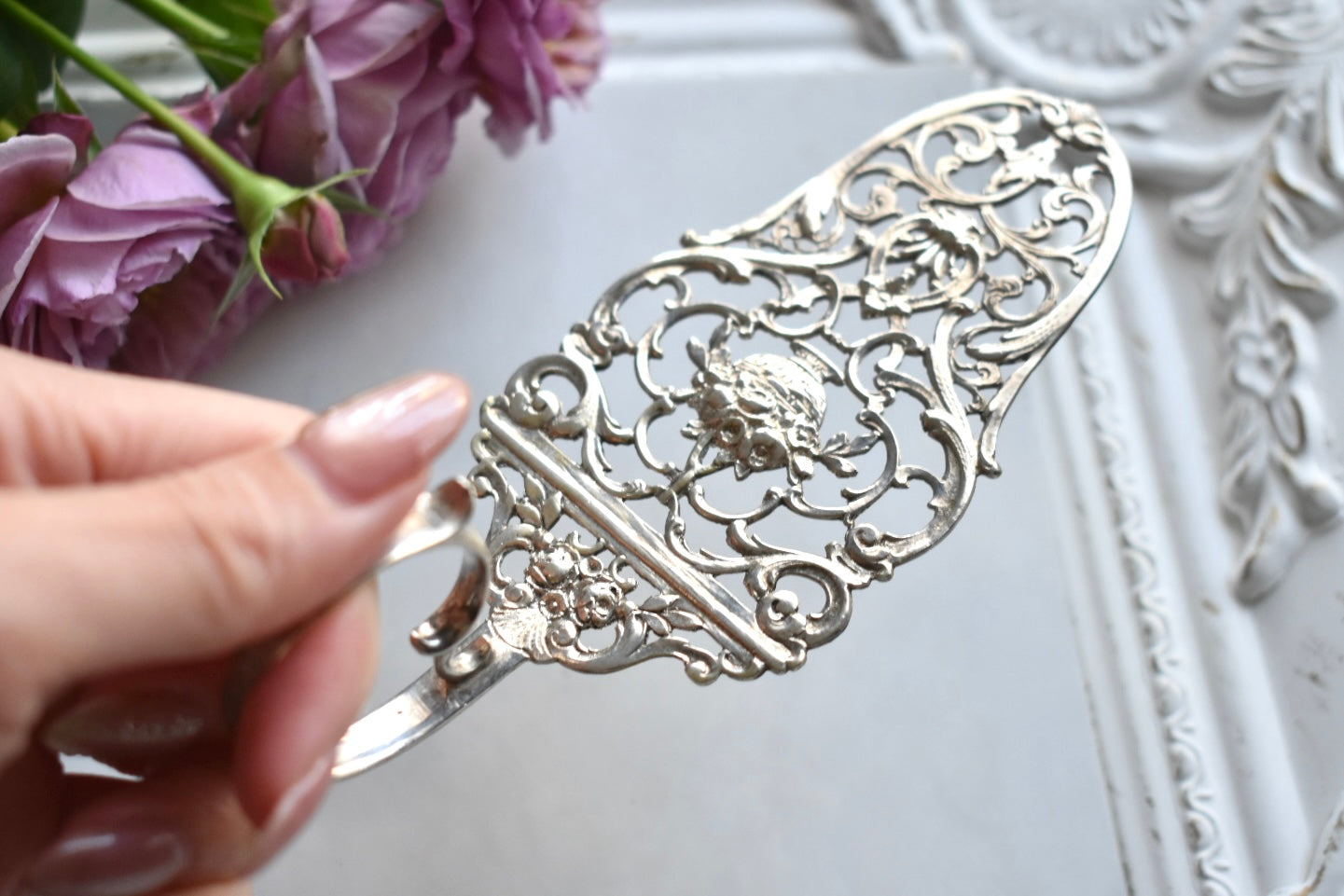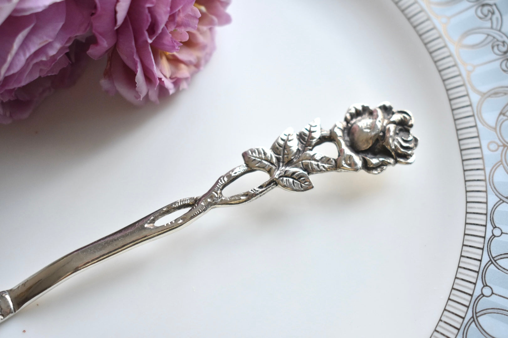 はバラのお花がデザインされています。取手の部分もバラで仕上げられています。