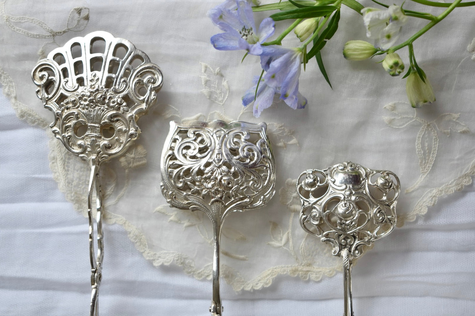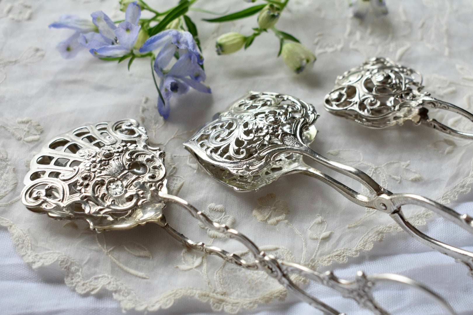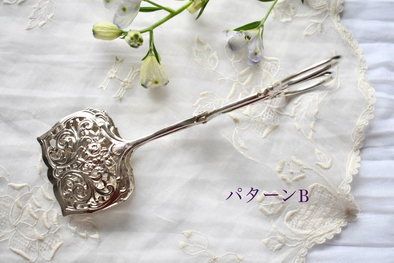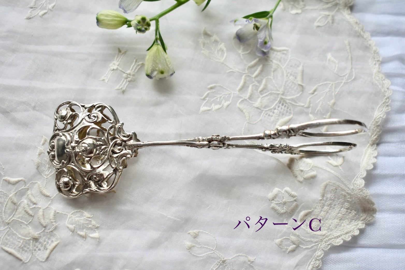 ドイツのアンティークシルバーのトング(3種)をご紹介いたします。