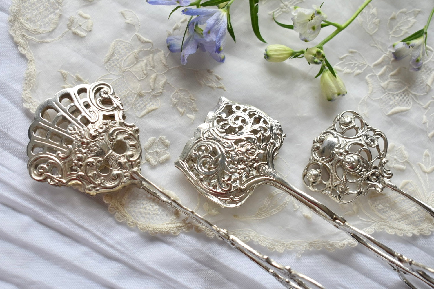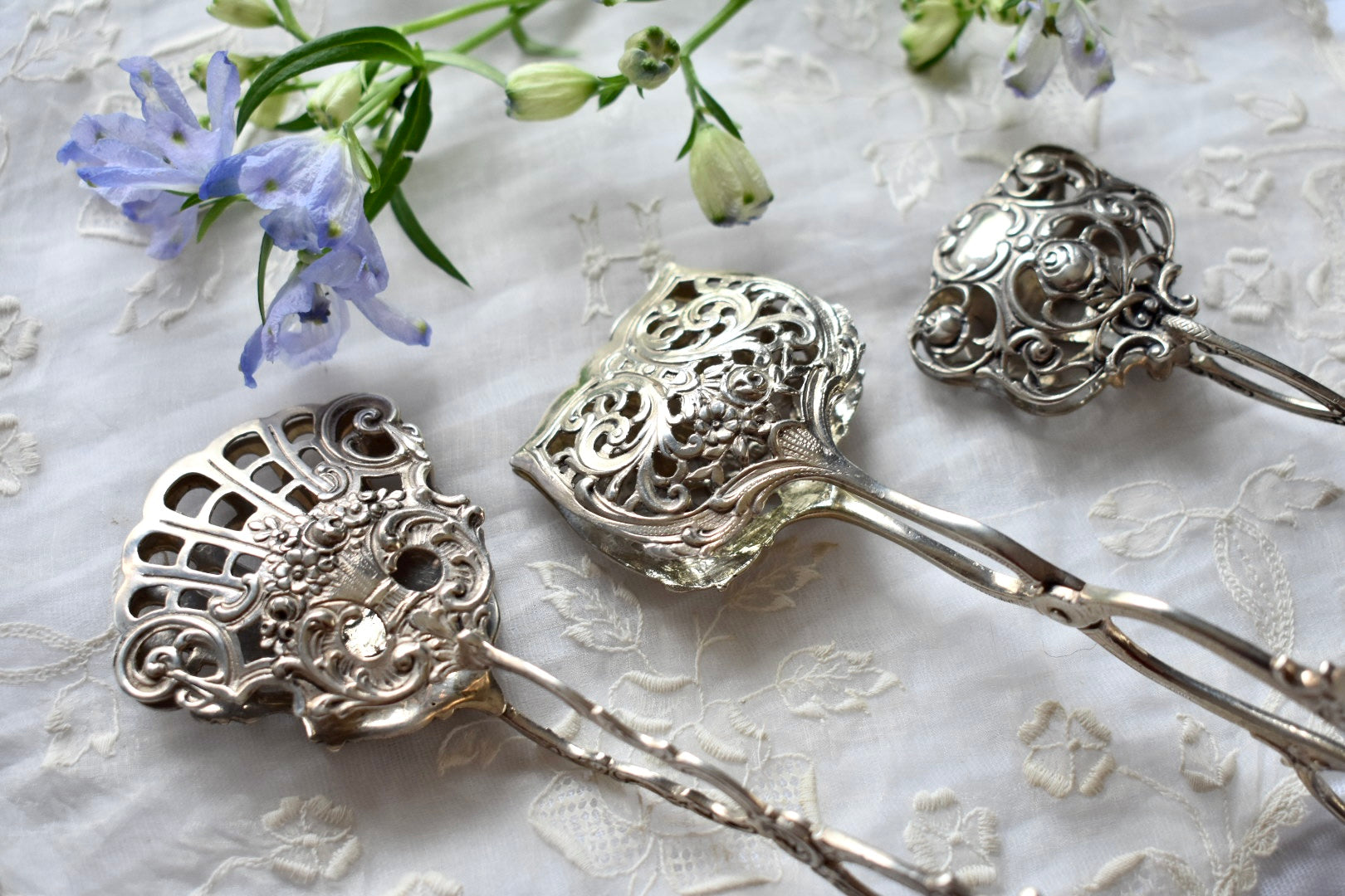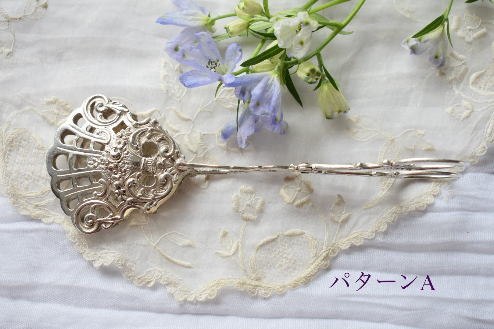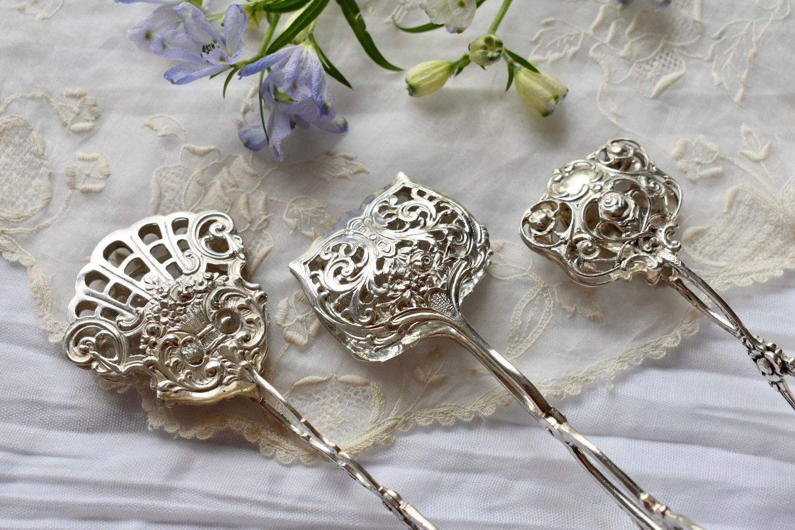 ドイツのアンティークシルバーのトング(3種)をご紹介いたします。