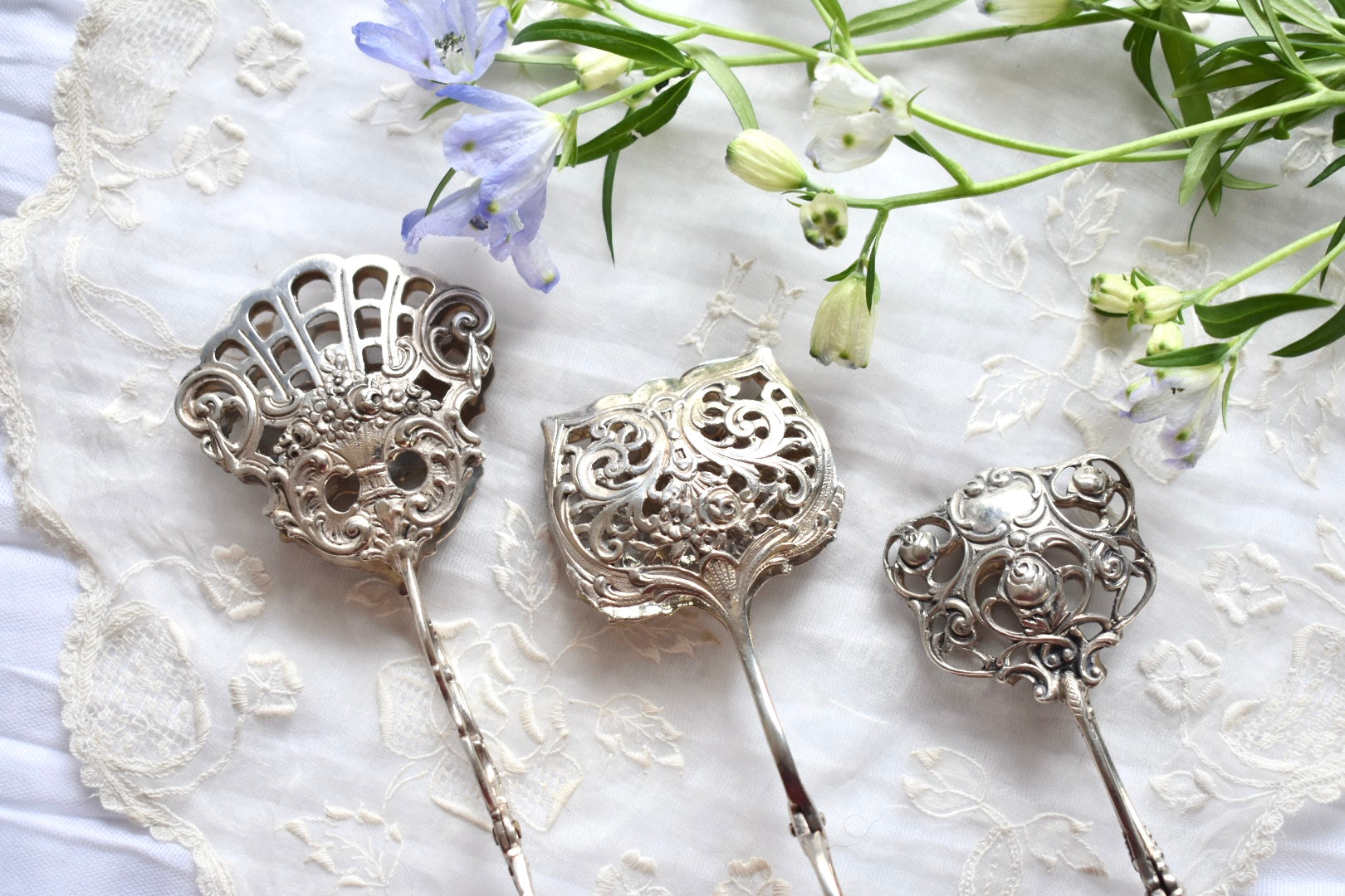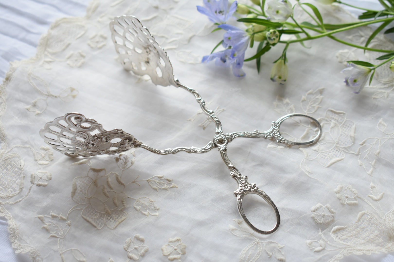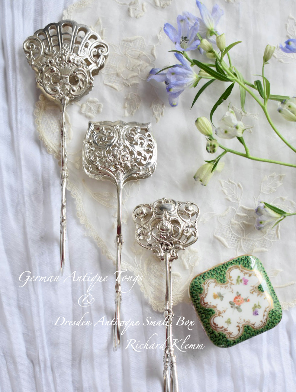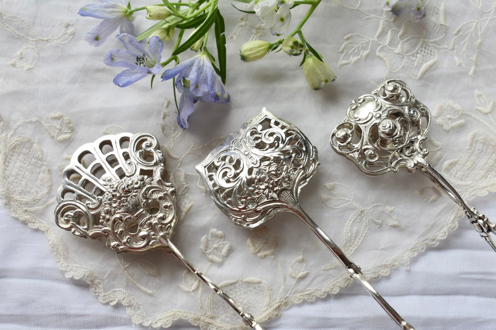 ドイツのアンティークシルバーのトング(3種)をご紹介いたします。