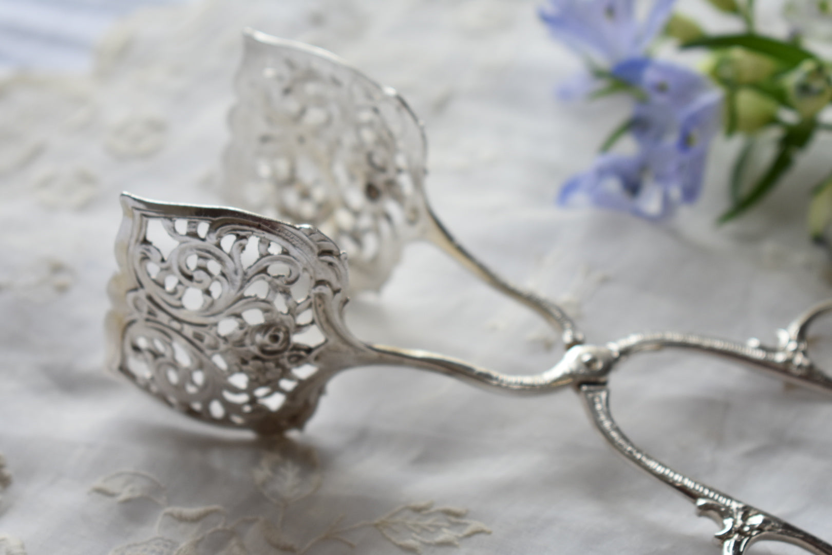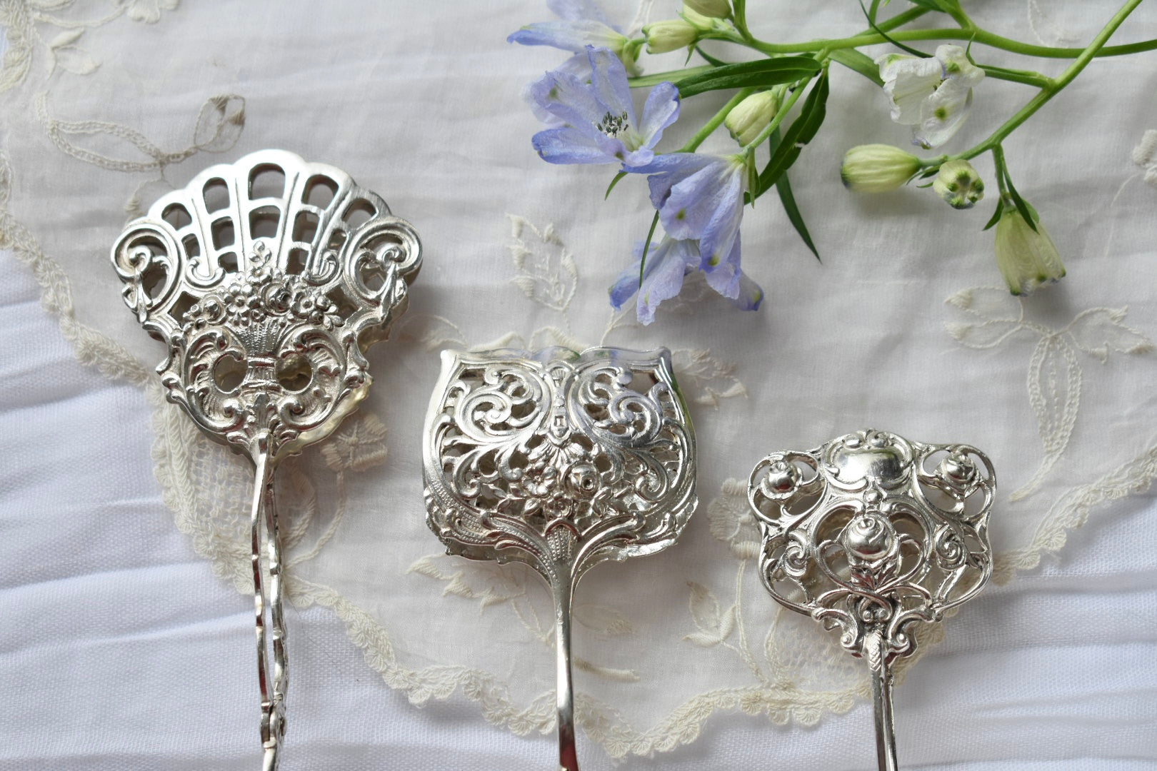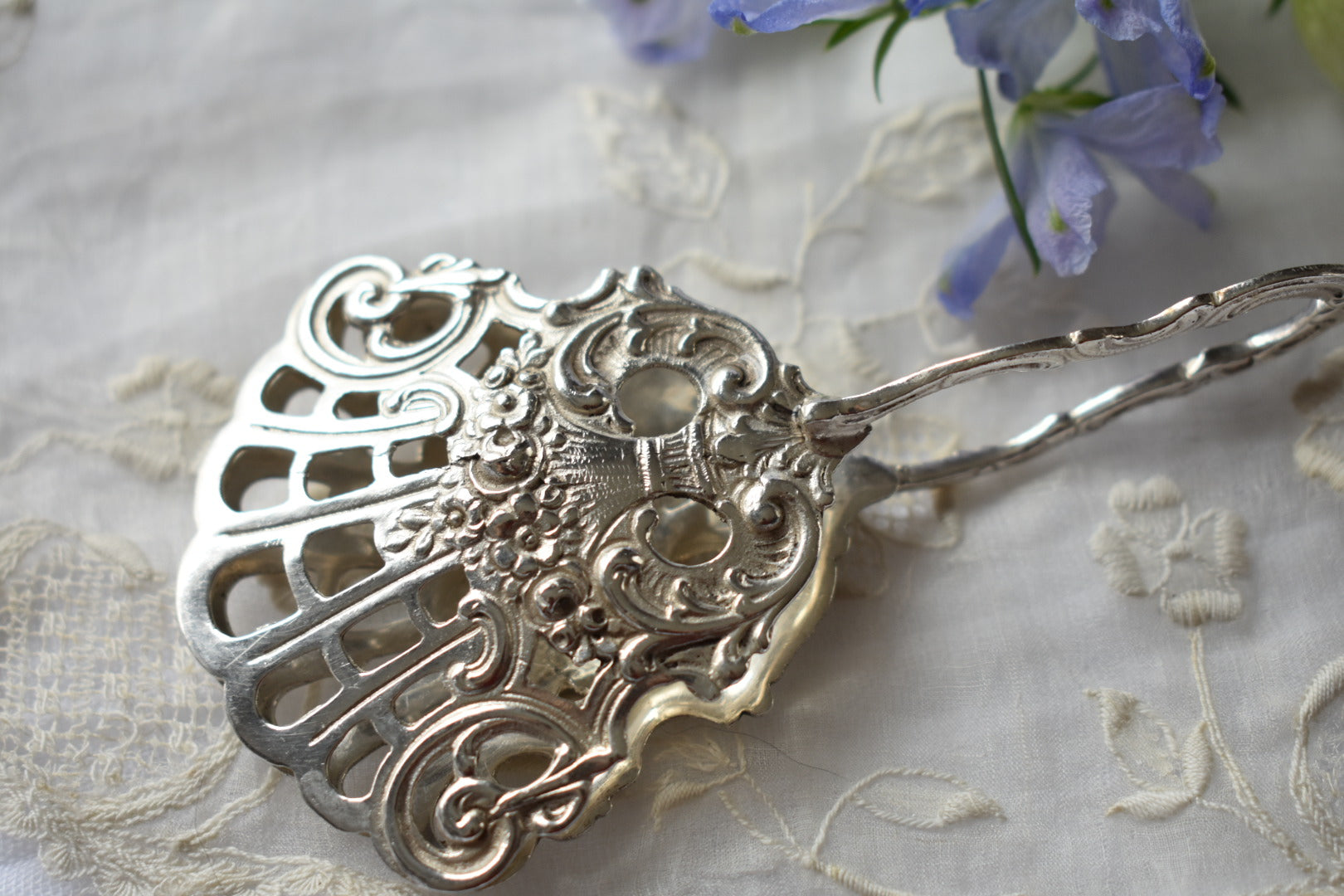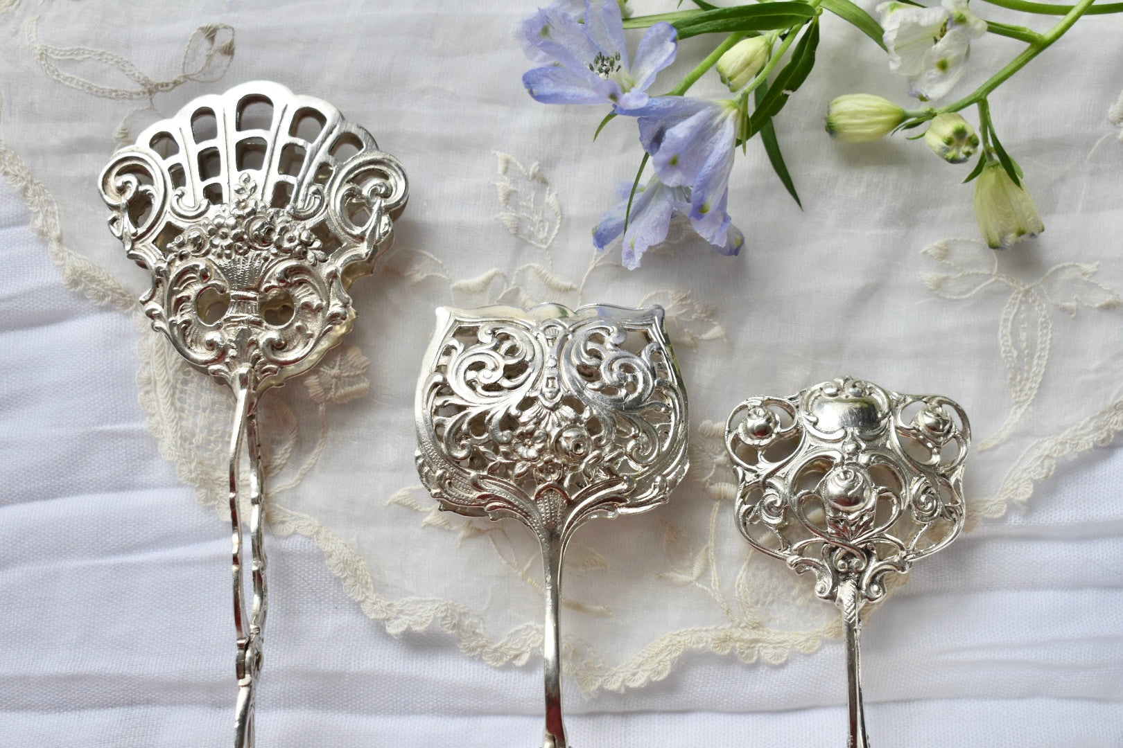 ドイツのアンティークシルバーのトング(3種)をご紹介いたします。