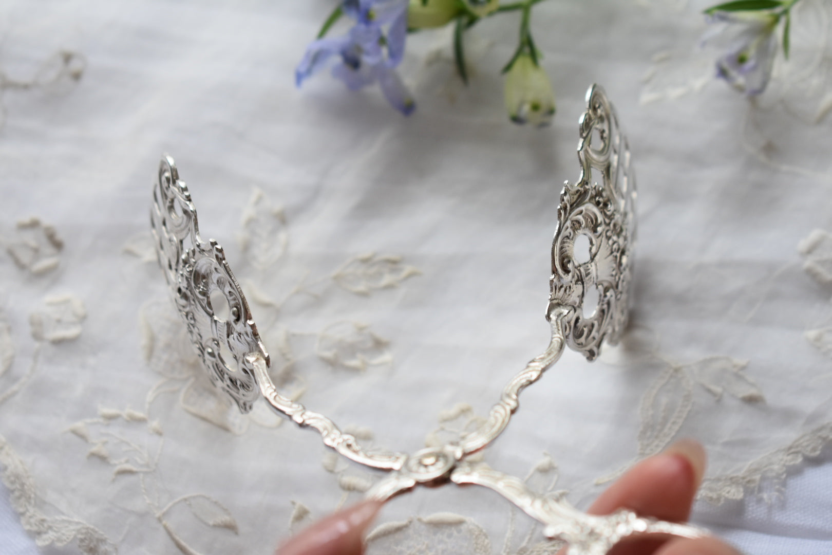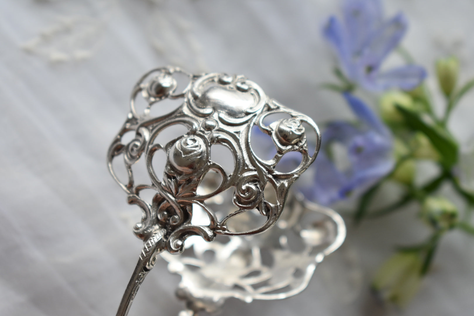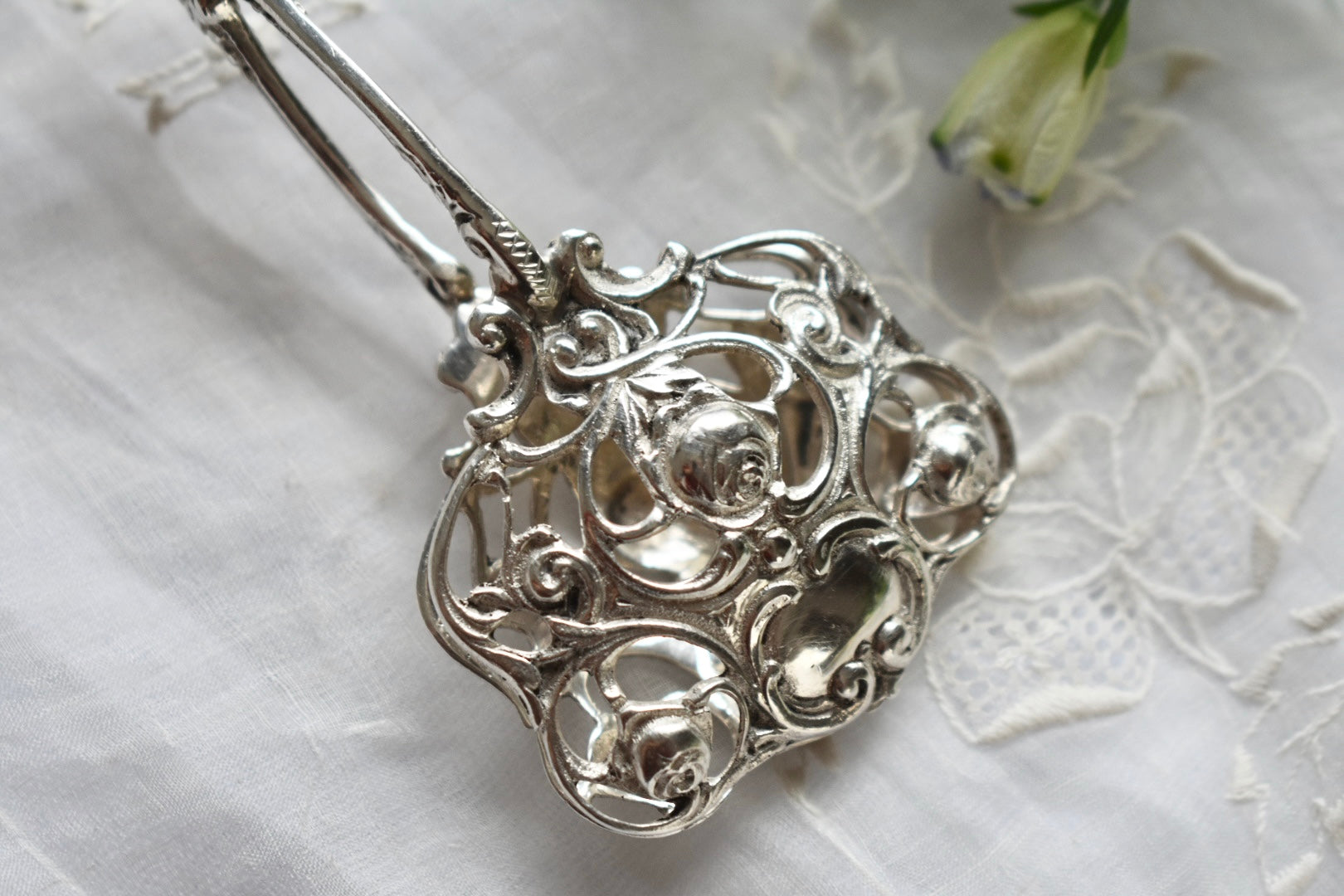 細いスカイでバラがデザインされた繊細であり愛らしいトング。