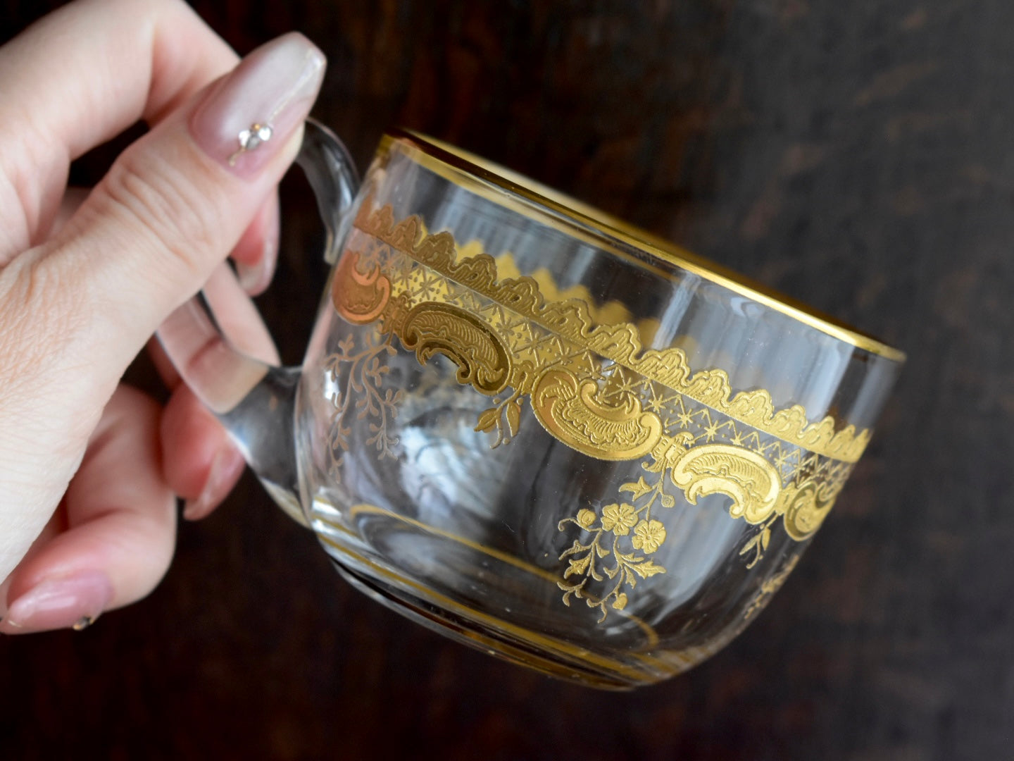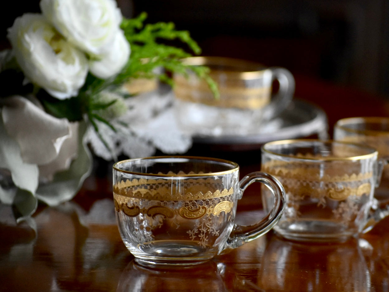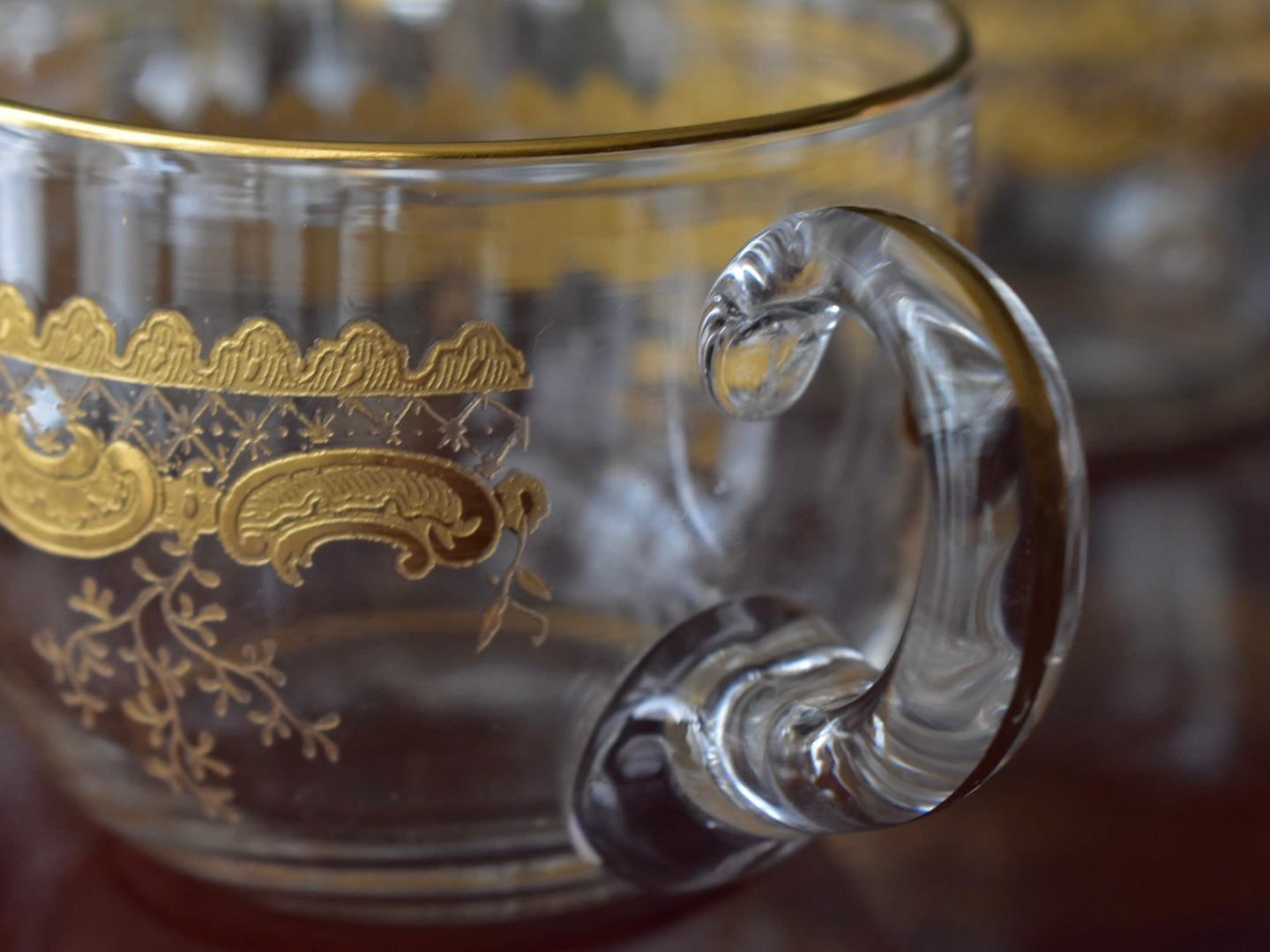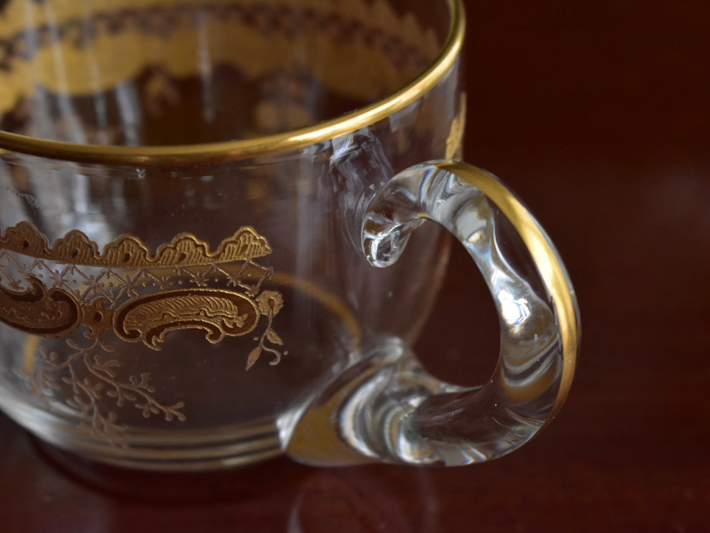 今回のグラスは、どれも未使用と思うほどに金彩の剥落もなく、カップの底にスレもありません。