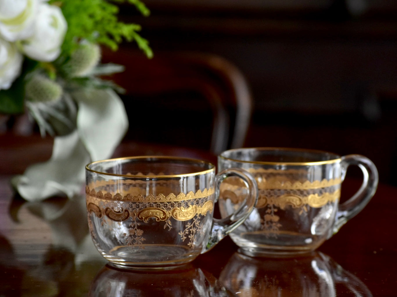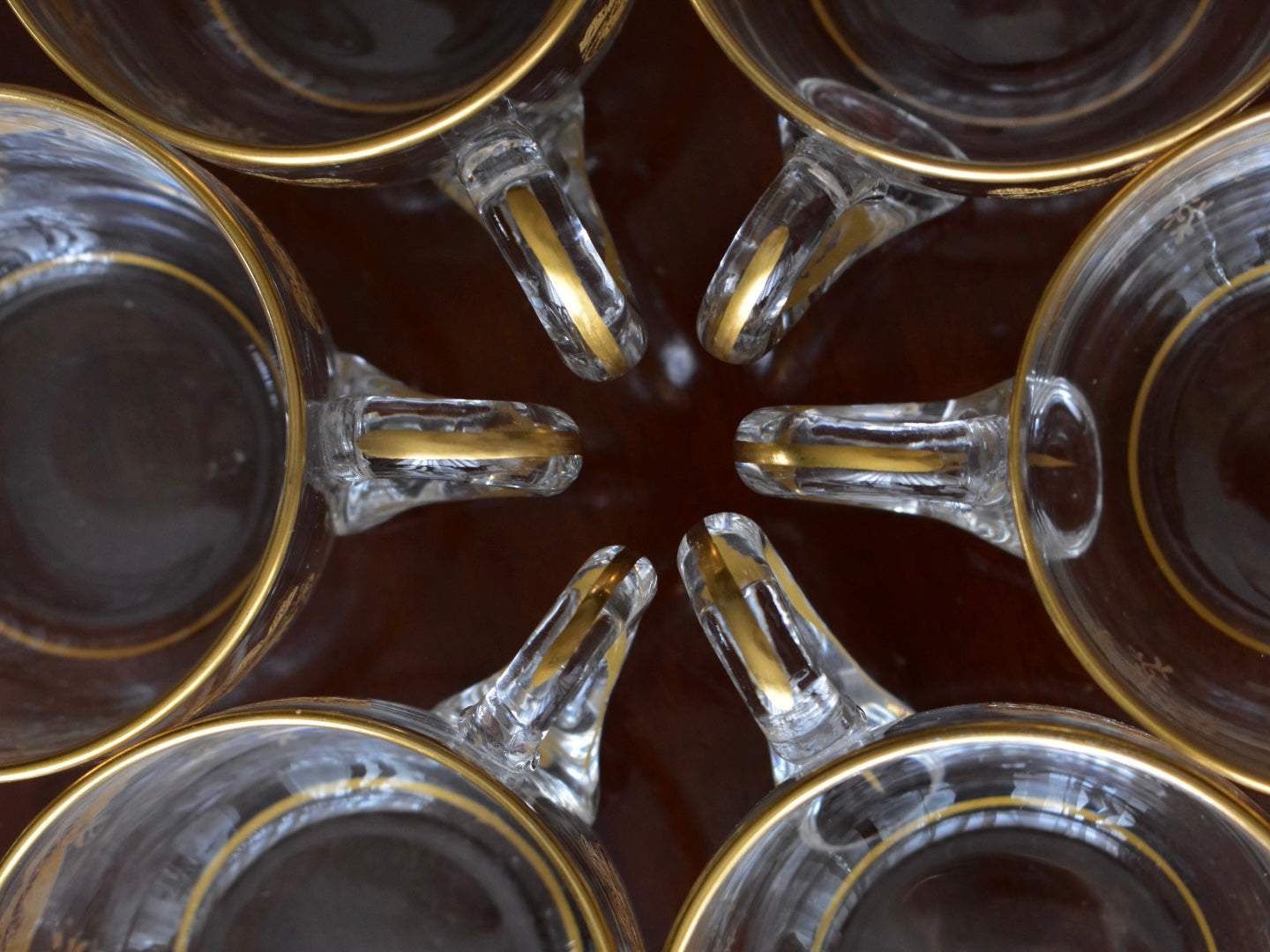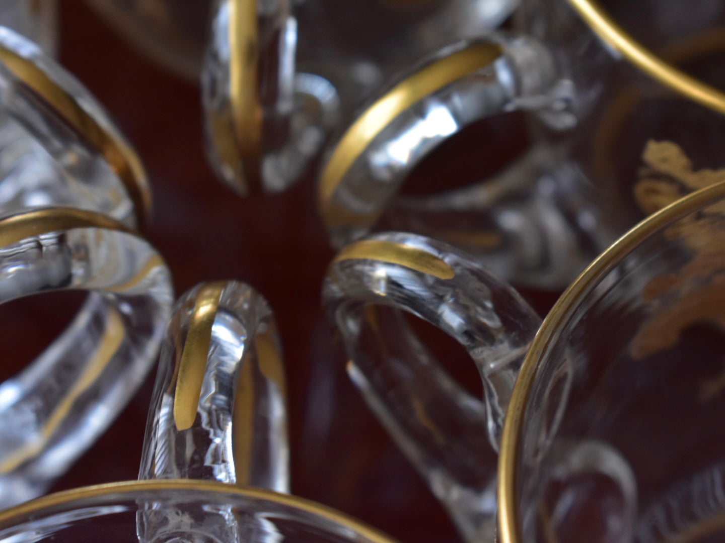 今回のグラスは、どれも未使用と思うほどに金彩の剥落もなく、カップの底にスレもありません。