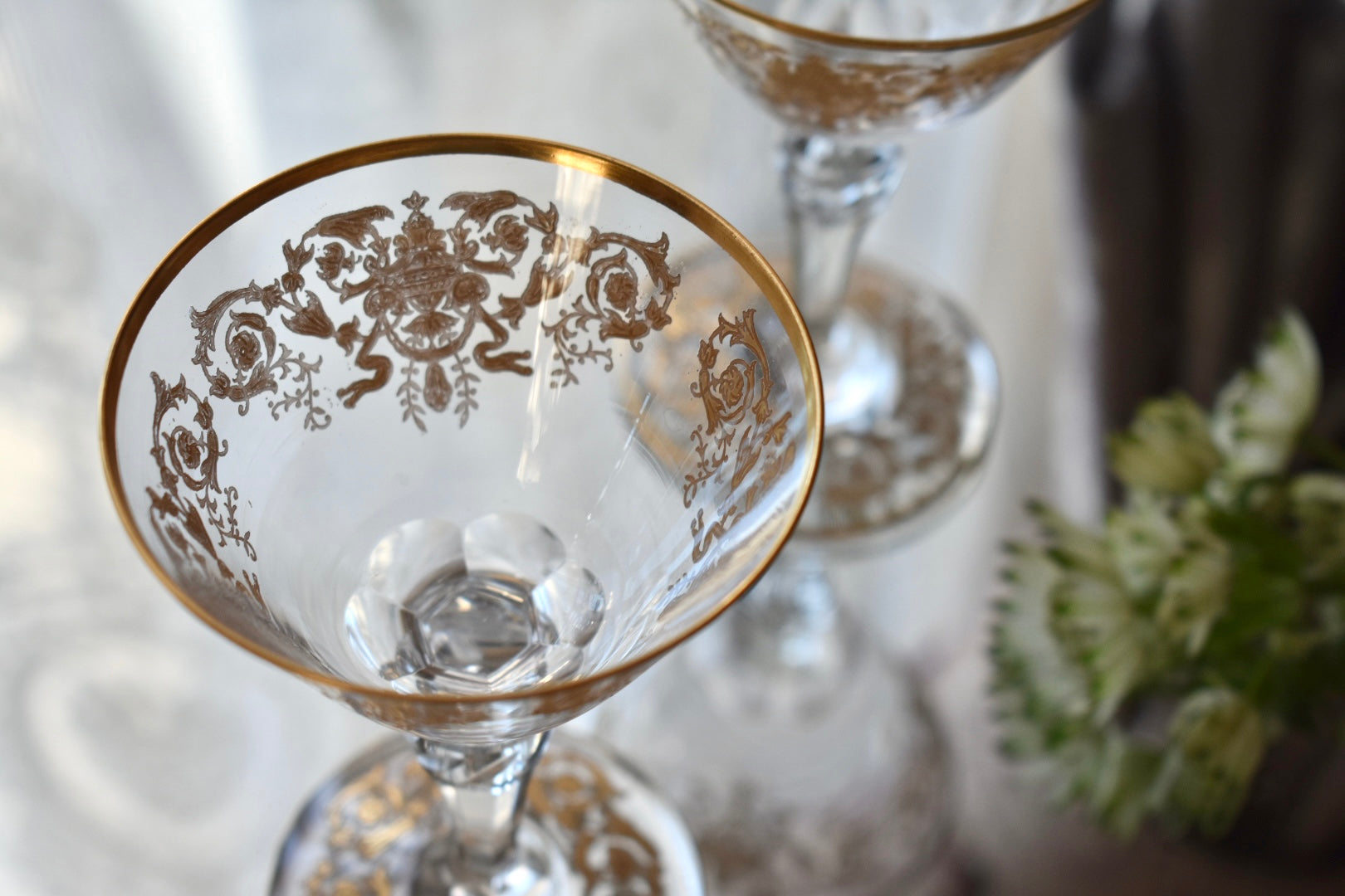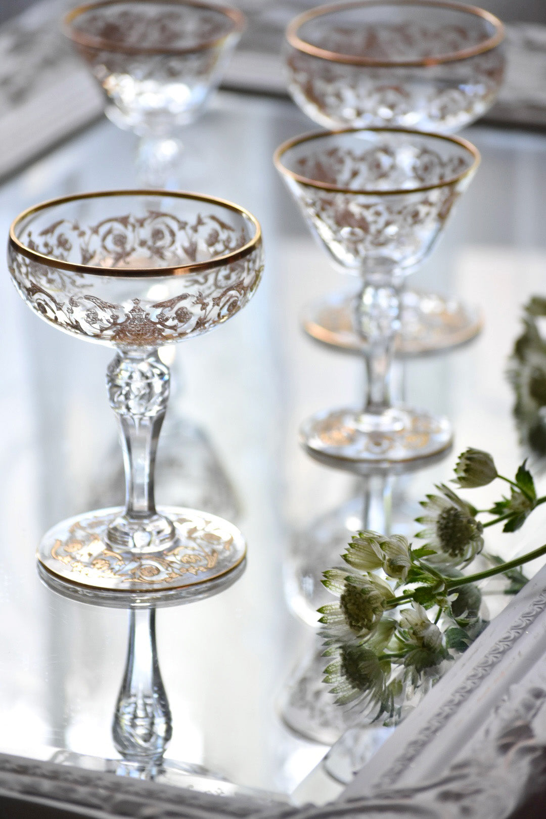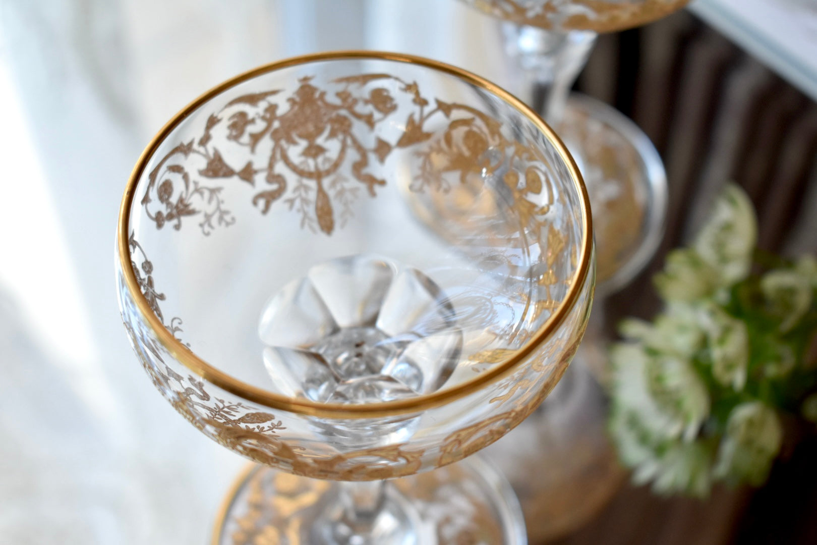 砂糖が貴重とされた時代、フルーツをシャンパンに浸して楽しんだり、所作が美しく見えるグラスは貴婦人にとても愛されました。