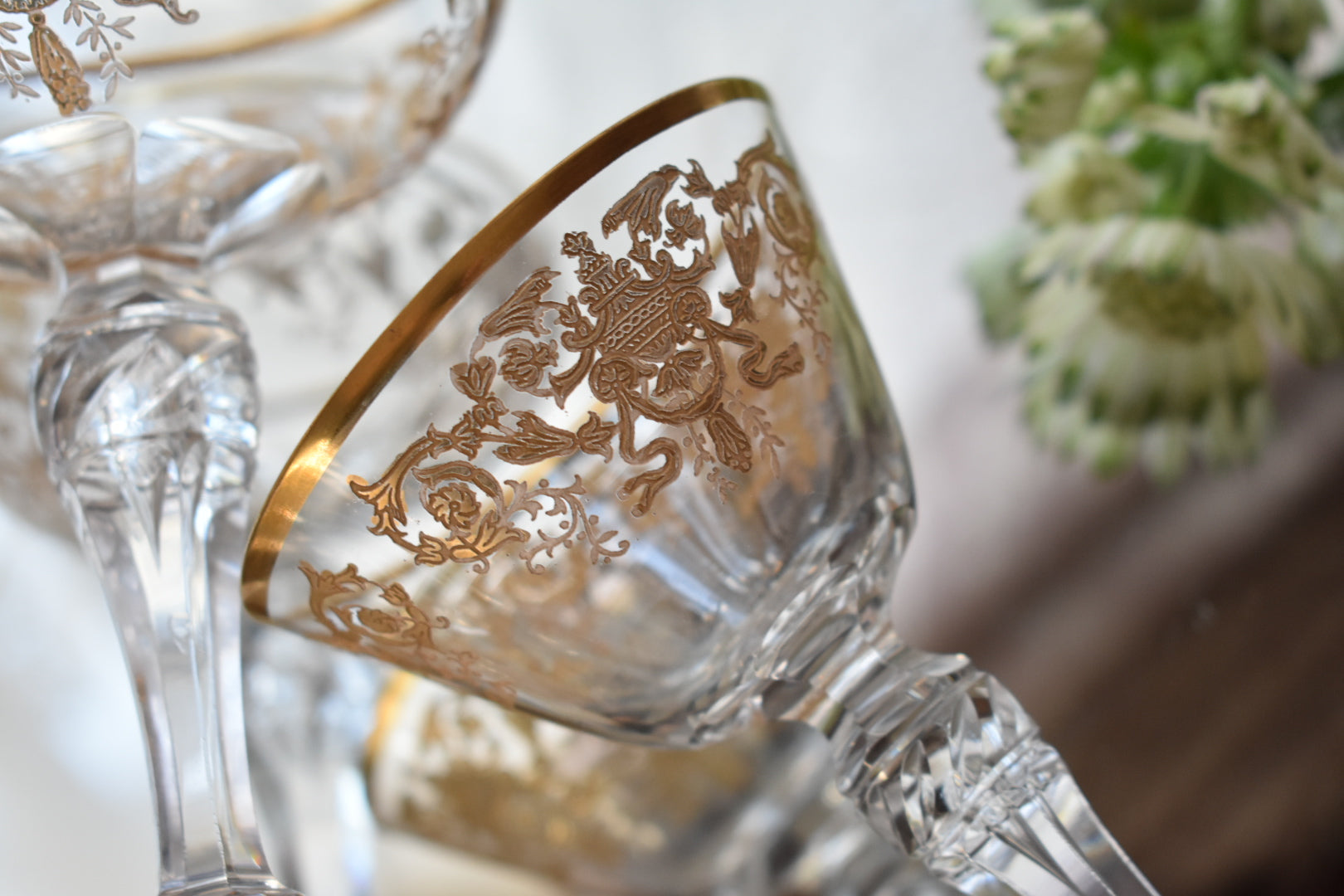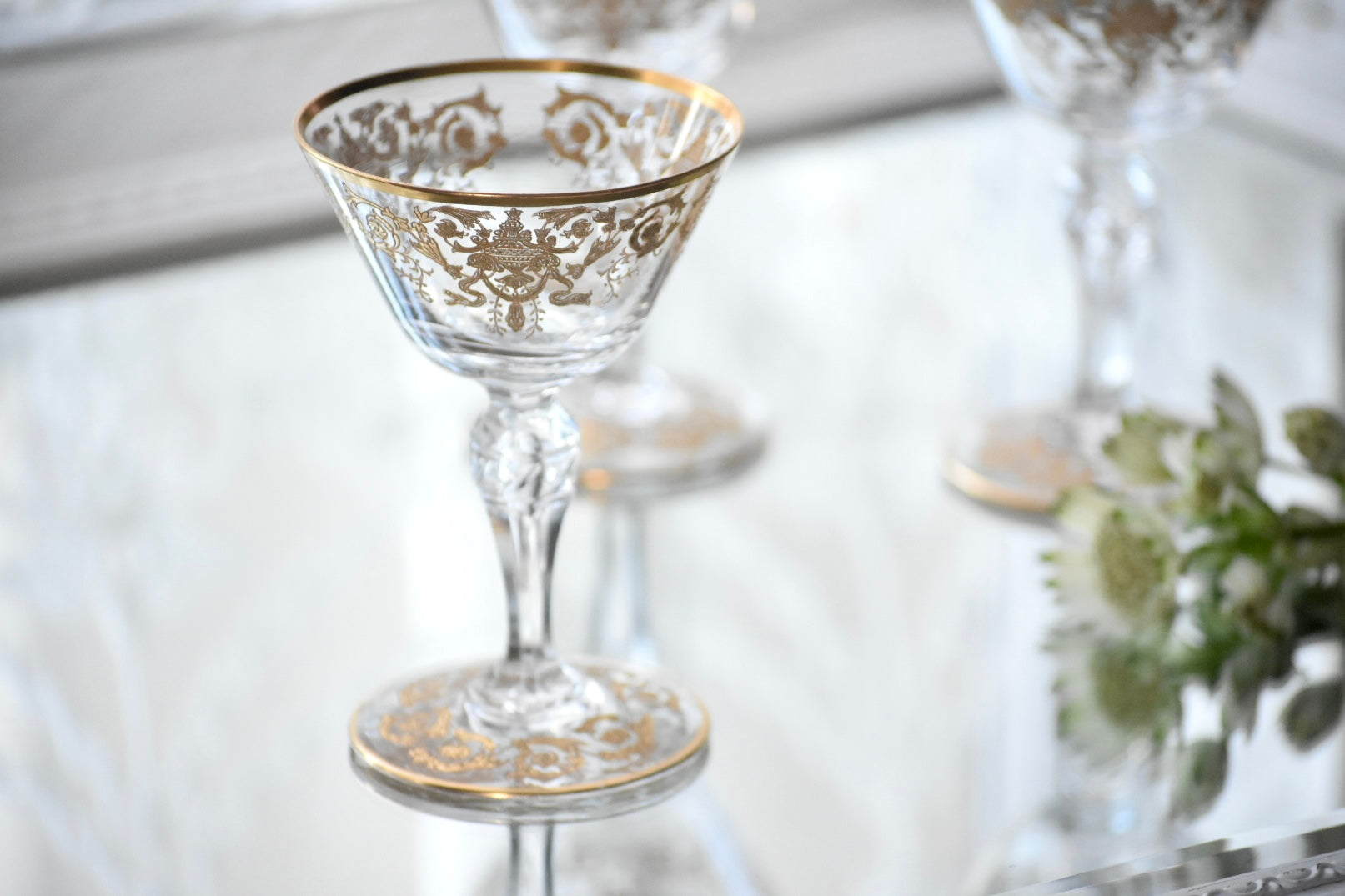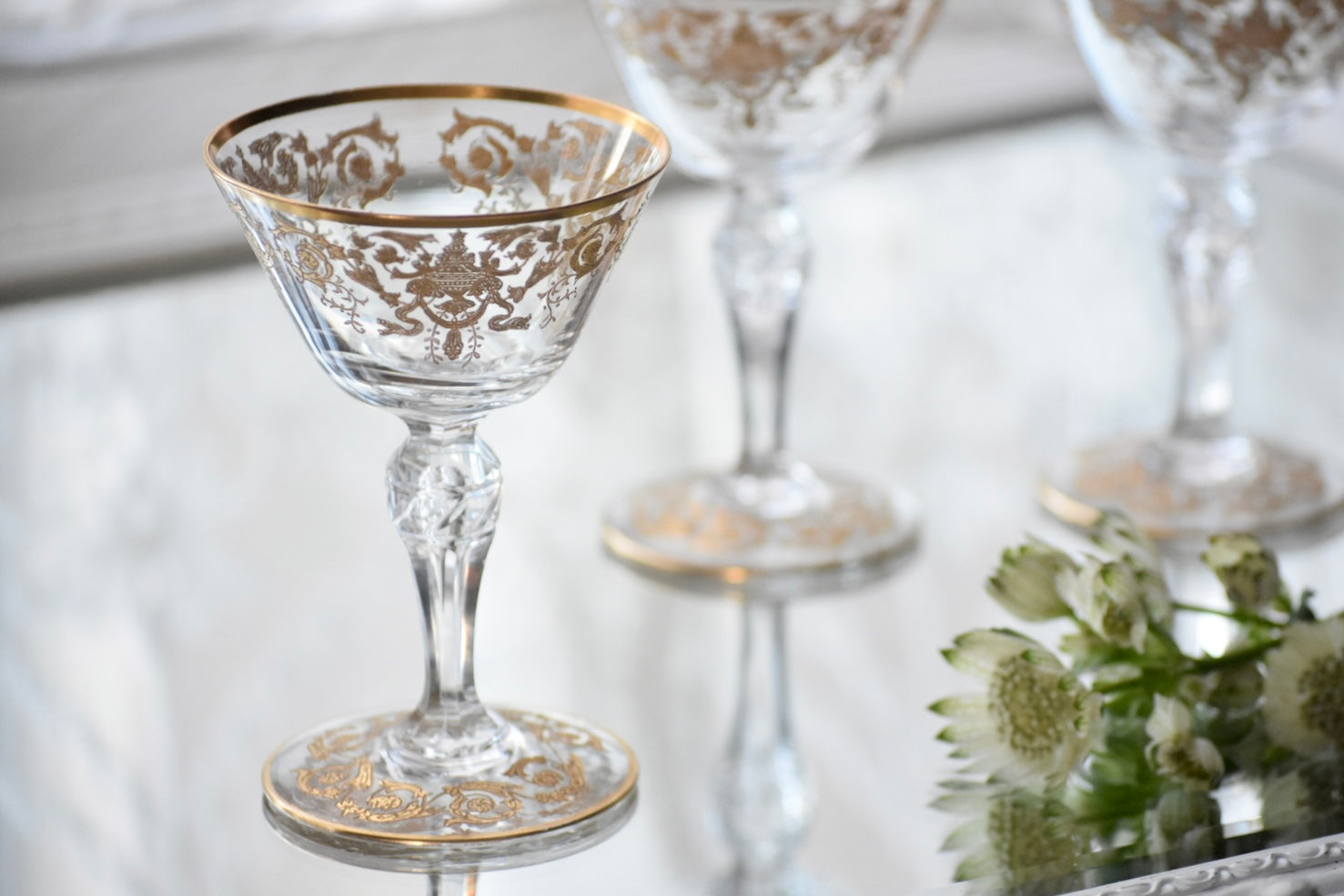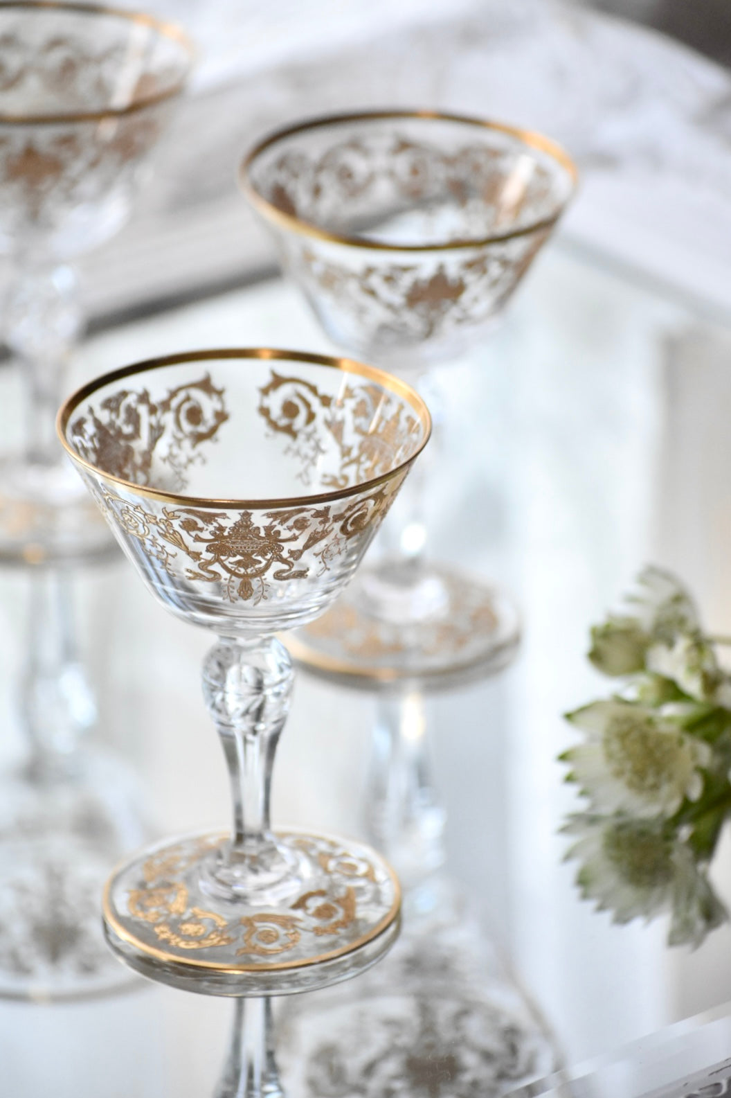 砂糖が貴重とされた時代、フルーツをシャンパンに浸して楽しんだり、所作が美しく見えるグラスは貴婦人にとても愛されました。