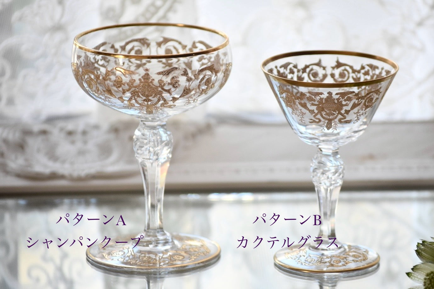 シャンパンクープとカクテルグラス。