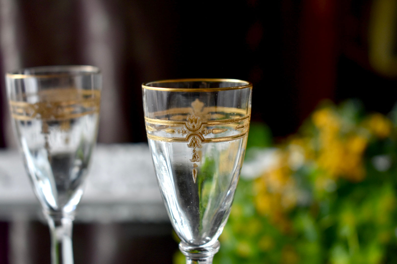 一つ目は、取手付きのブロンズがあしらわれたグラスです。グラスはサンルイの【PAPIN cristal de roche 868】シリーズです。