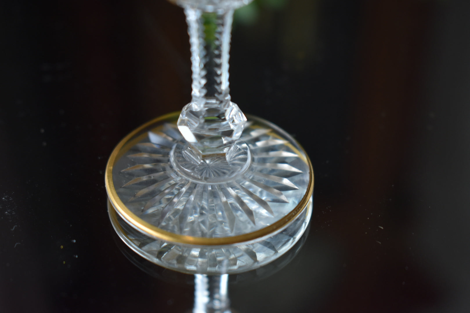 小さなグラスのステムにまでこのようなカットデザインを施すことで、一段と美しさを際立たせている点に、サンルイの強いこだわりと美意識を感じます。