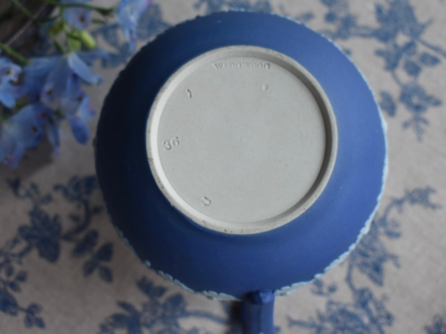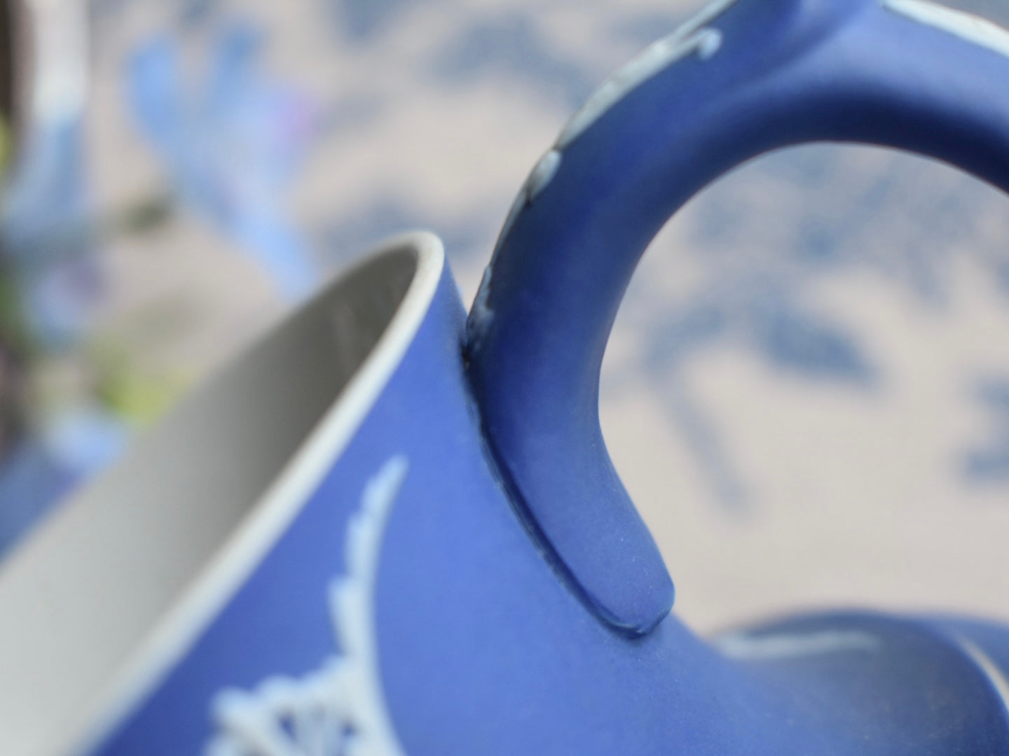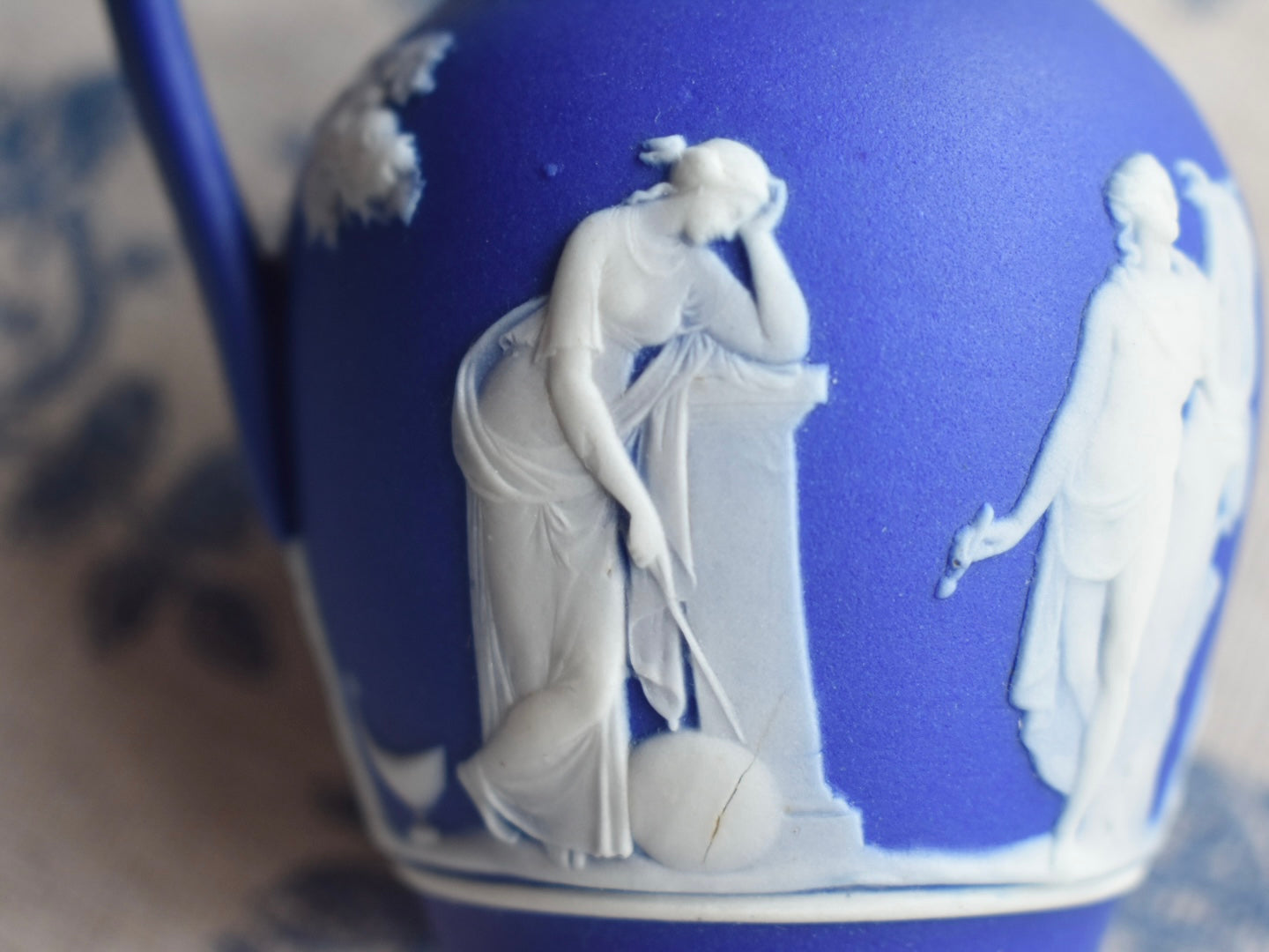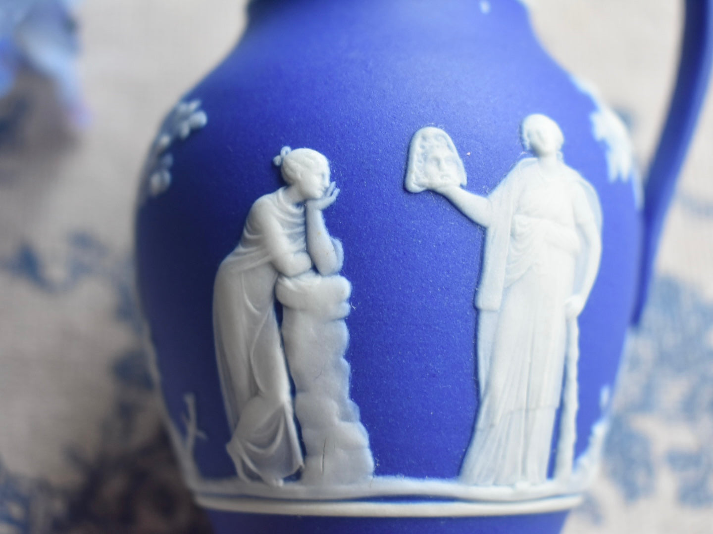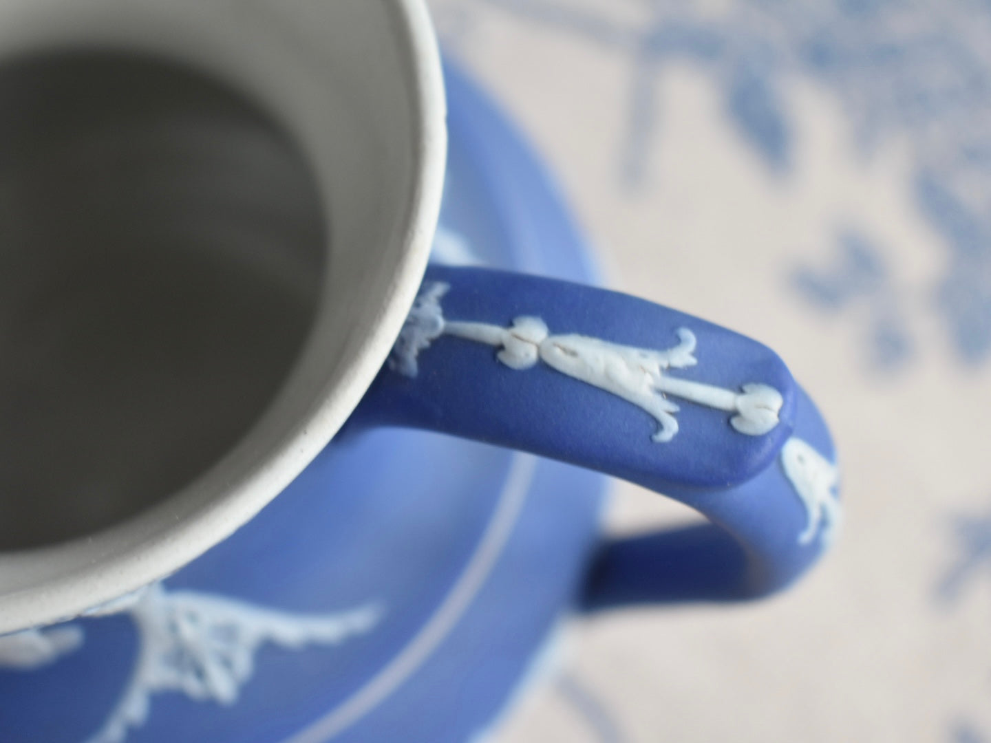 深みのあるロイヤルブルーの素地に、乳白色のレリーフが鮮やかなコントラストを描き出す姿は、ジャスパーウェアならではの気品を伝えています。