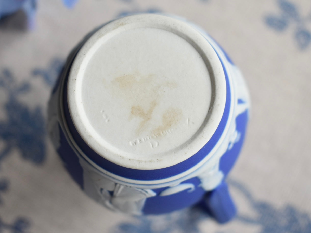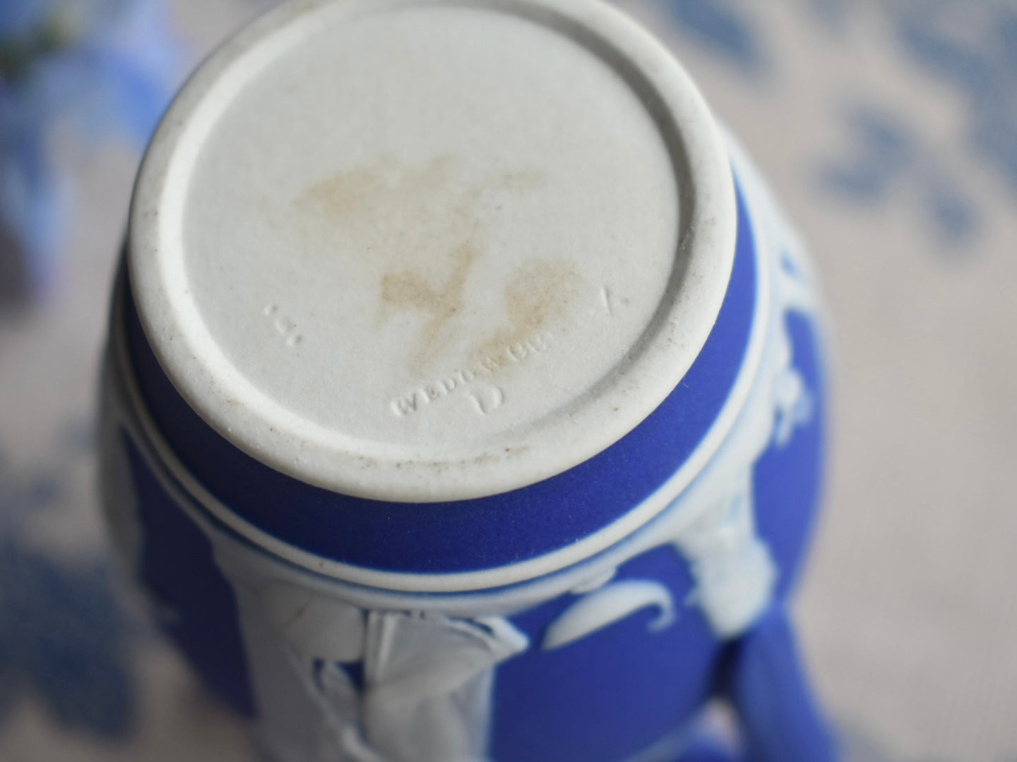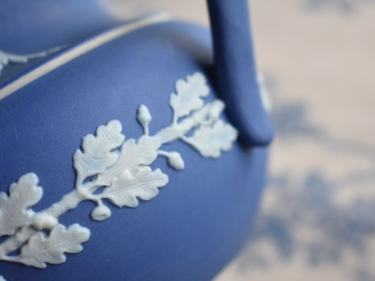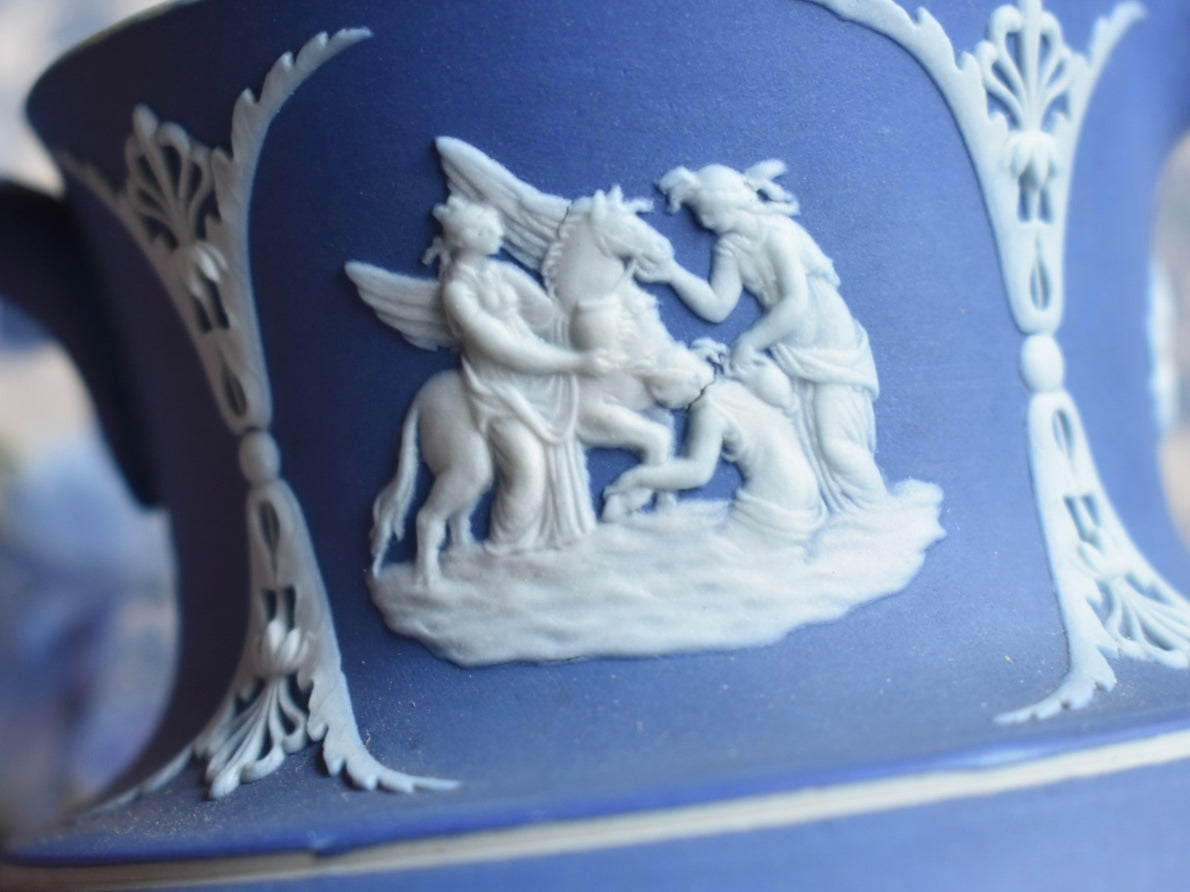 深みのあるロイヤルブルーの素地に、乳白色のレリーフが鮮やかなコントラストを描き出す姿は、ジャスパーウェアならではの気品を伝えています。