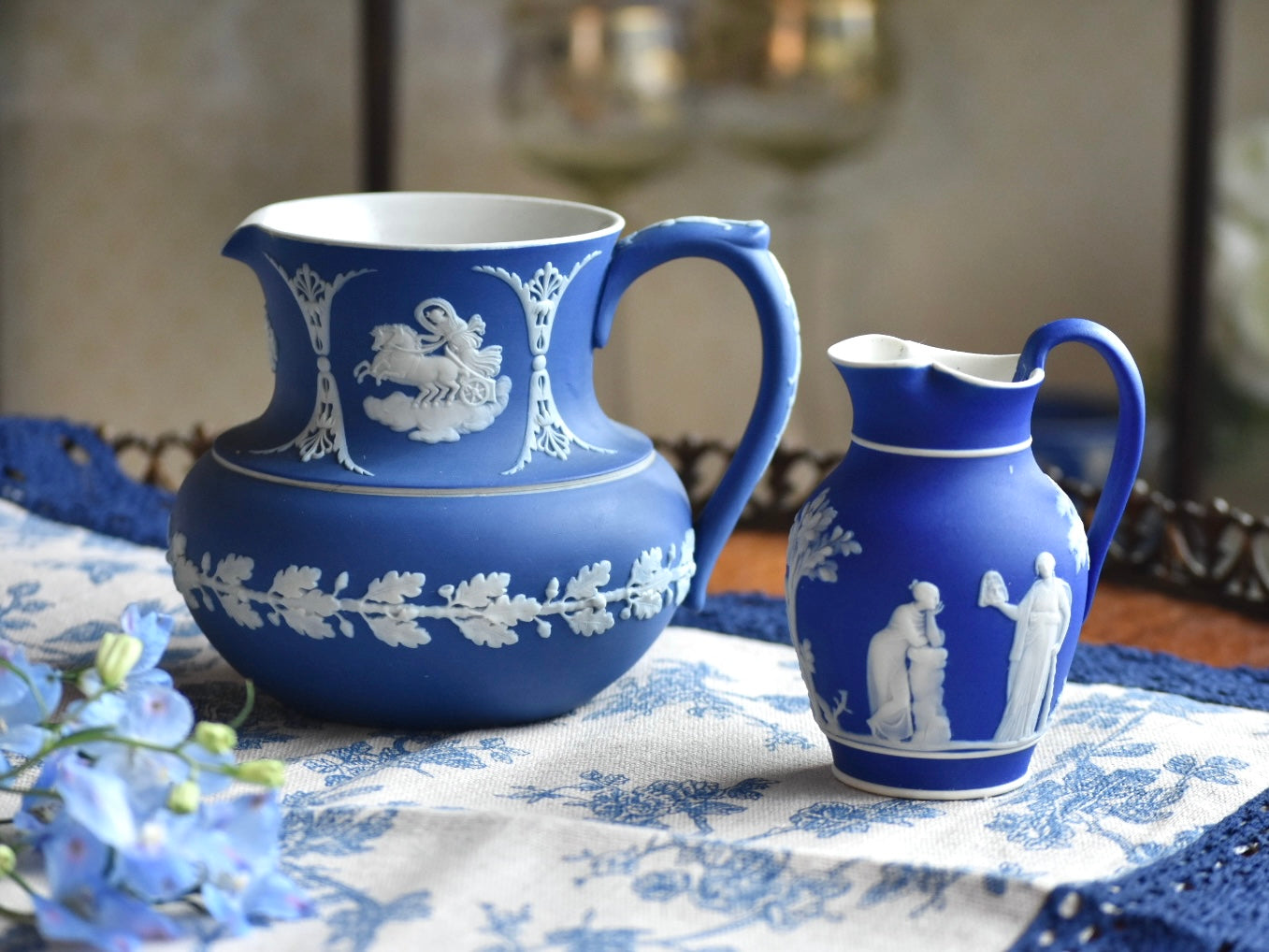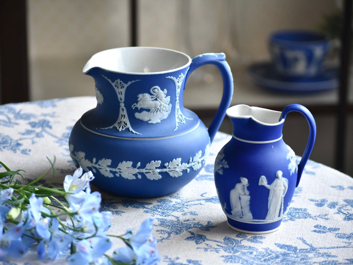 英国を代表する名窯、ウエッジウッドジャスパーの水差しとクリーマーをご紹介いたします。